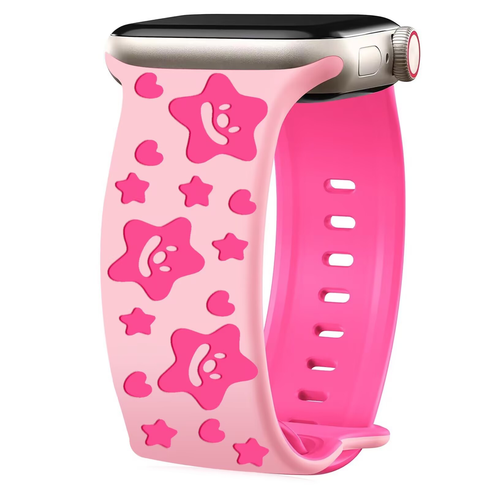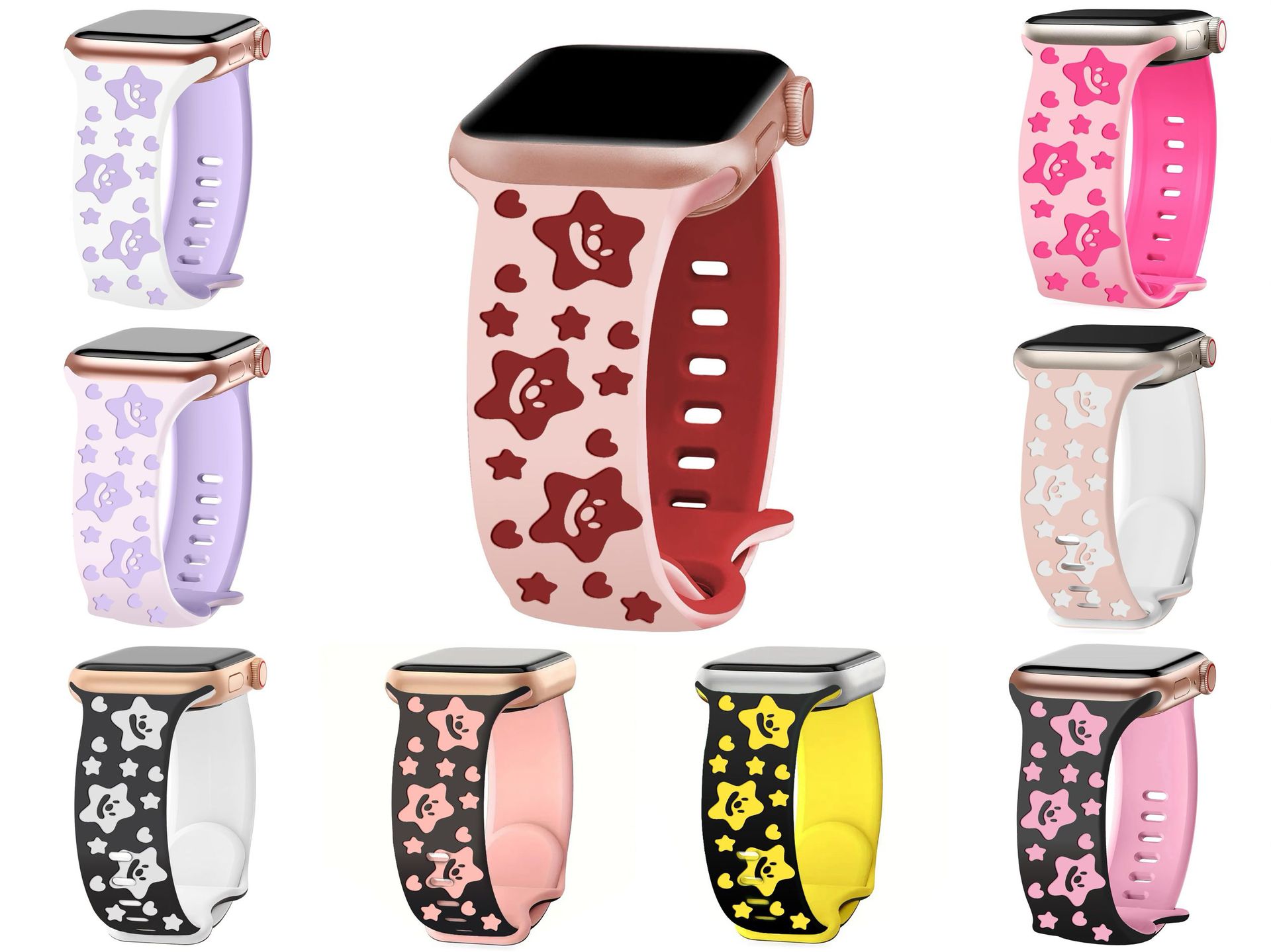 [ 商业 ] 适用apple watch表带iwatch8蝴蝶扣立体雕刻硅胶表带跨境卡通海星