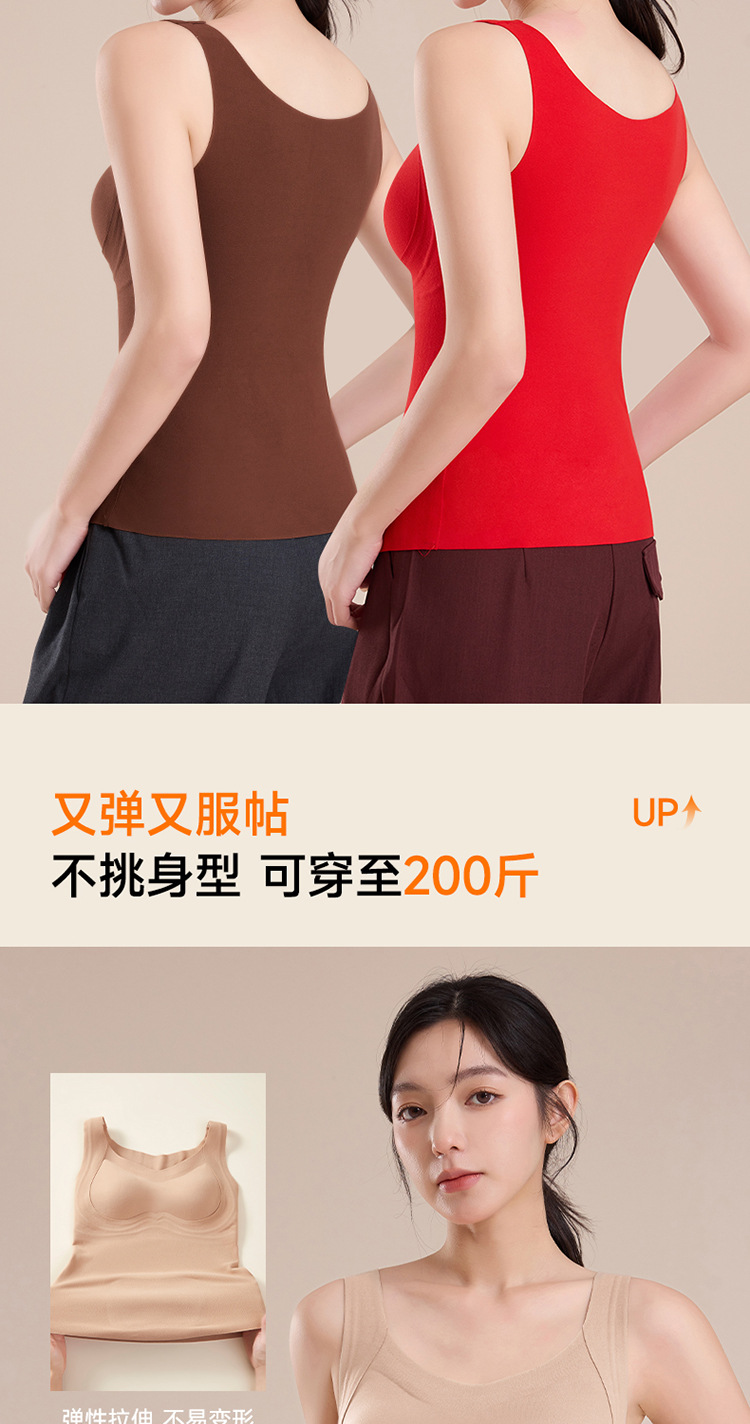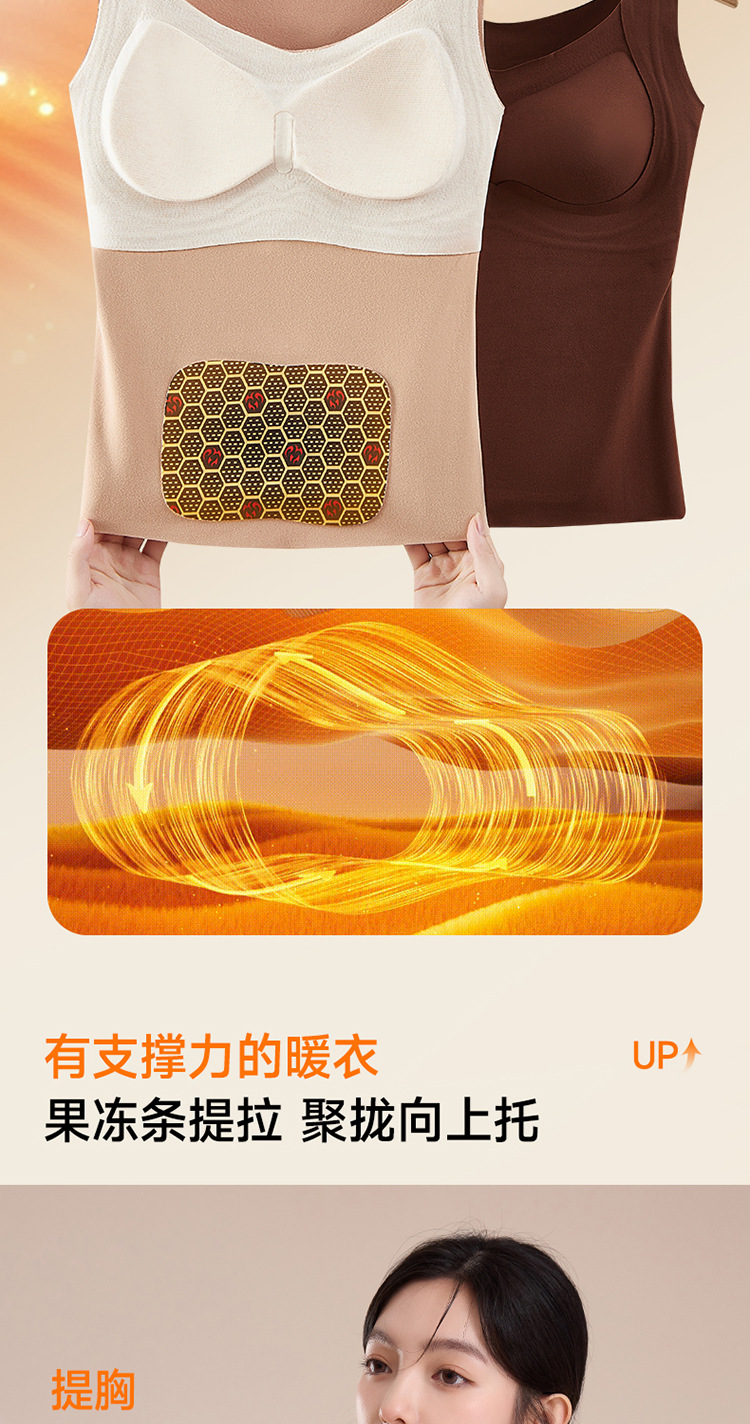 加大码德绒爆款保暖背心胸垫一体式无痕贴片恒温发热女士内衣批发