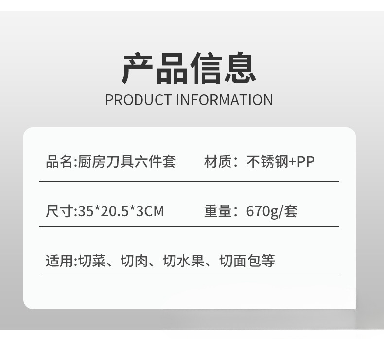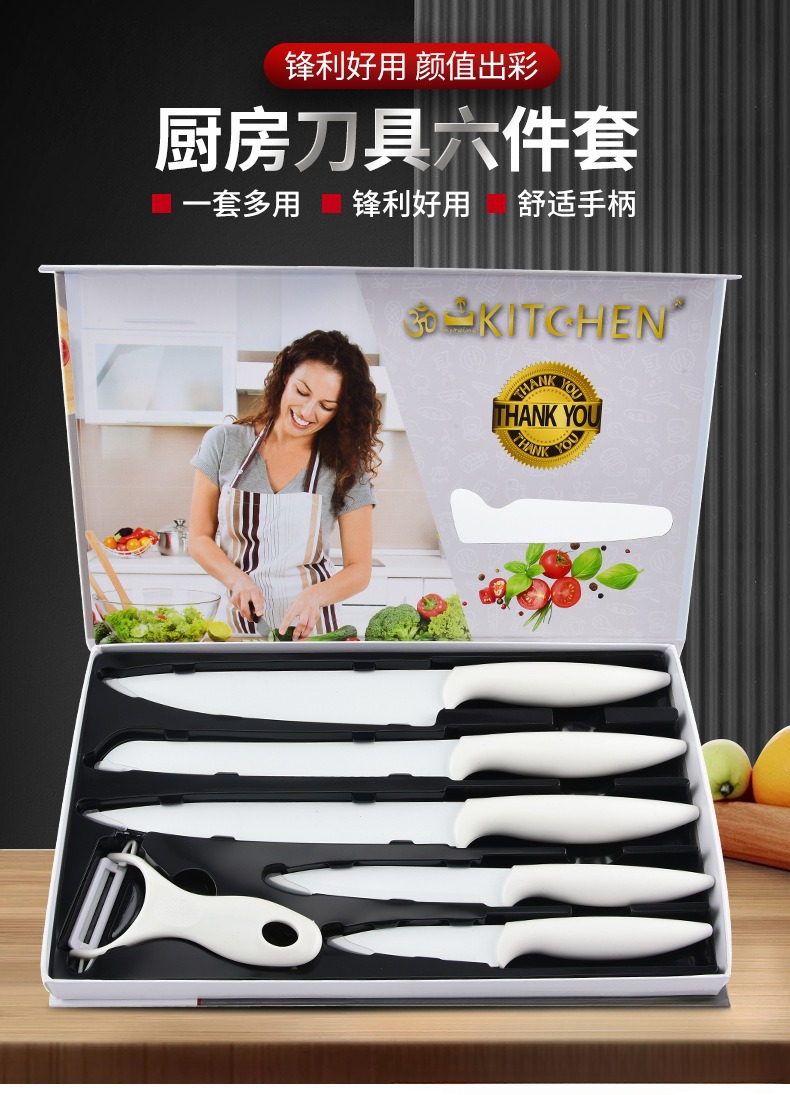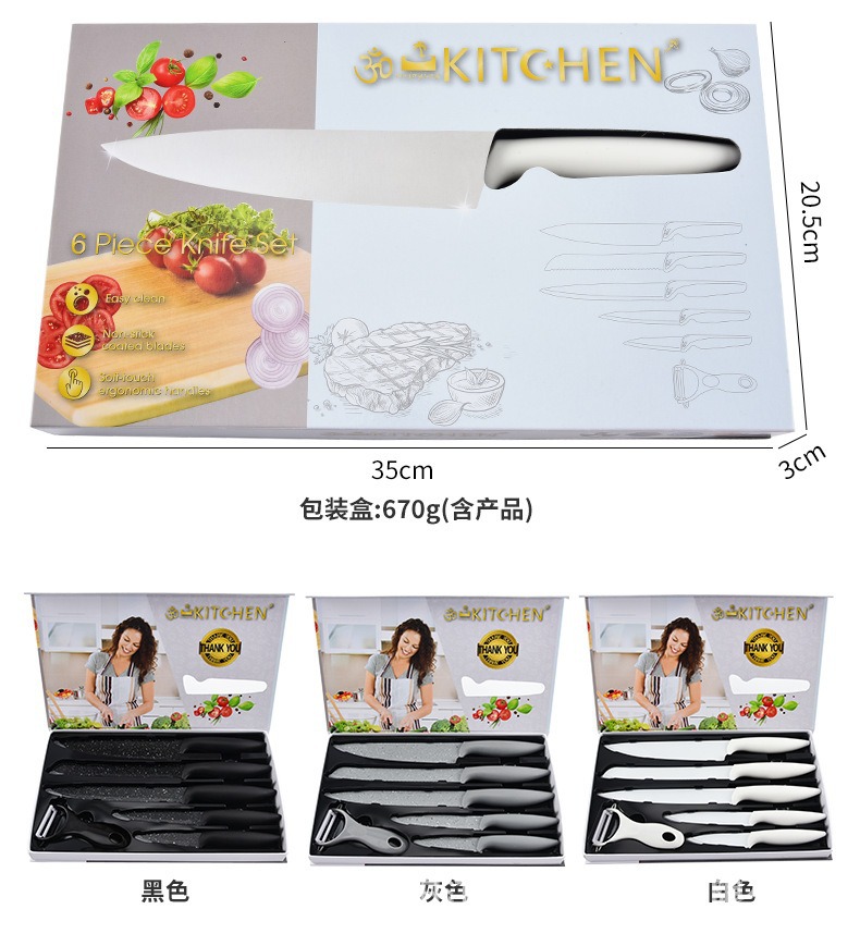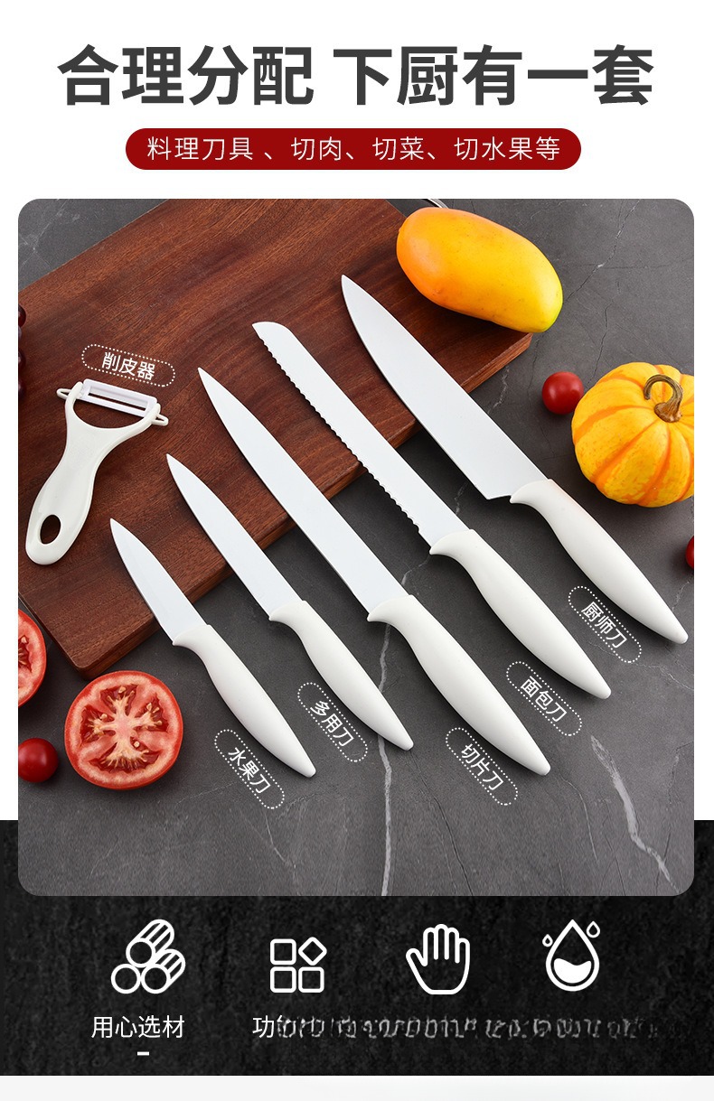 现货辣椒柄不锈钢厨房刀具套装家用多功能礼品盒装六件套刀具