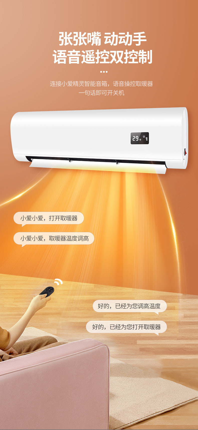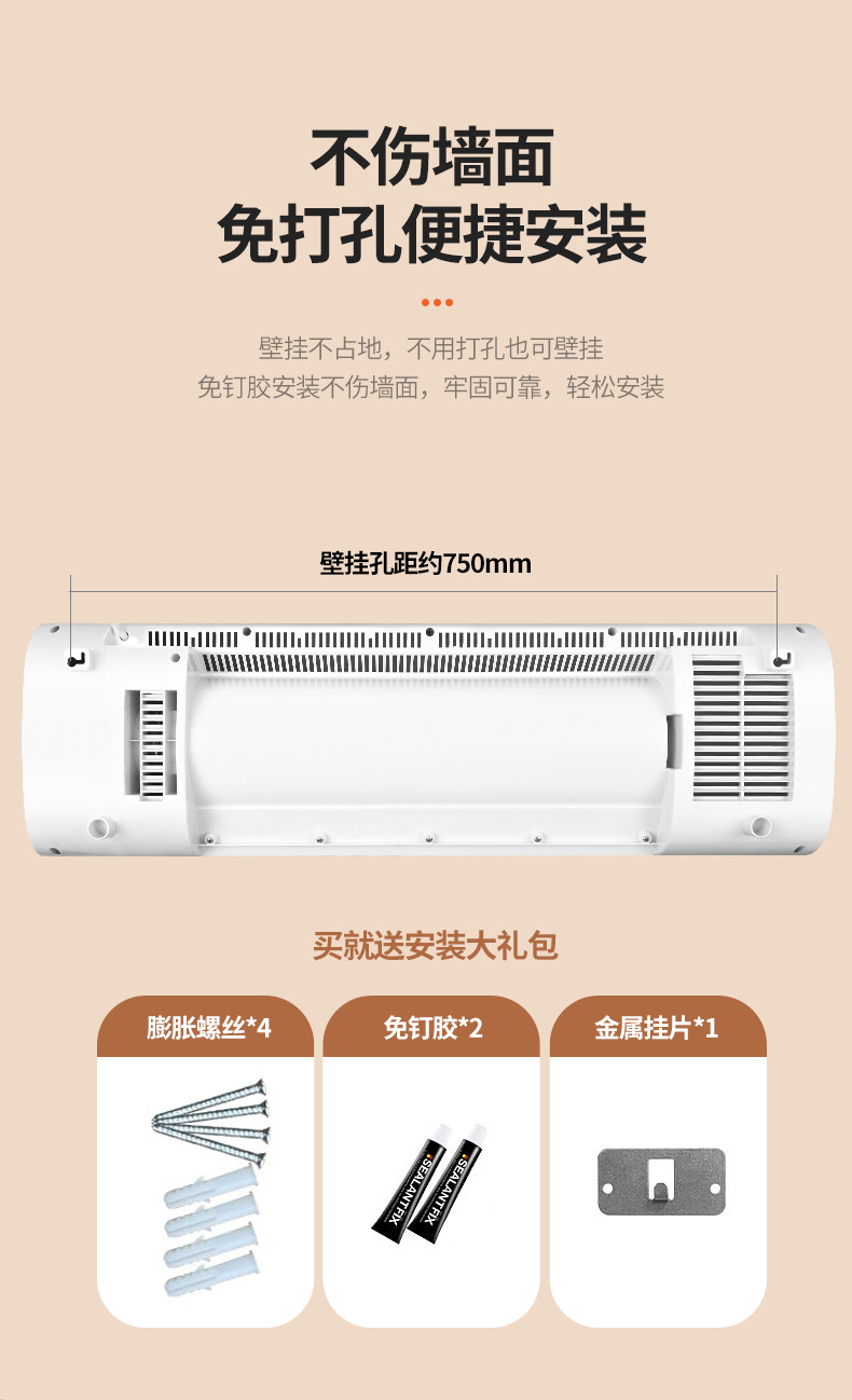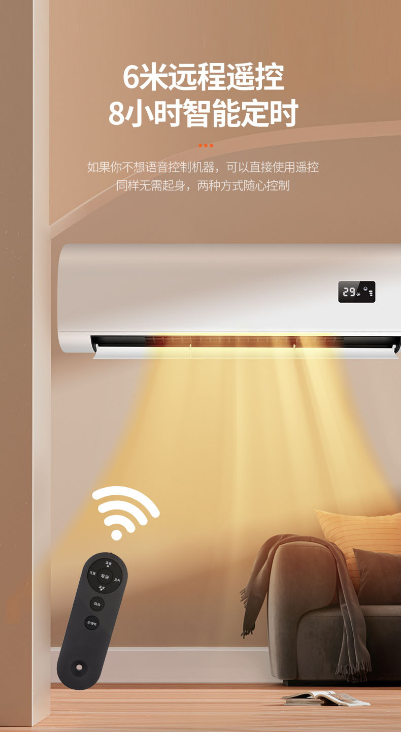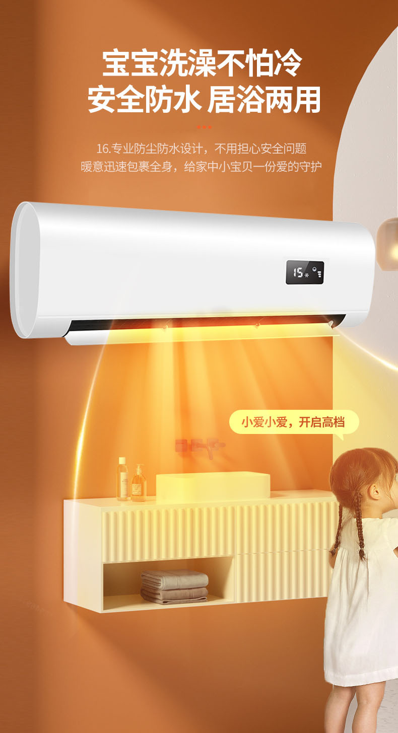 壁挂式暖风机冬季家用浴室暖风机定时语音功能3300w免打孔取暖器