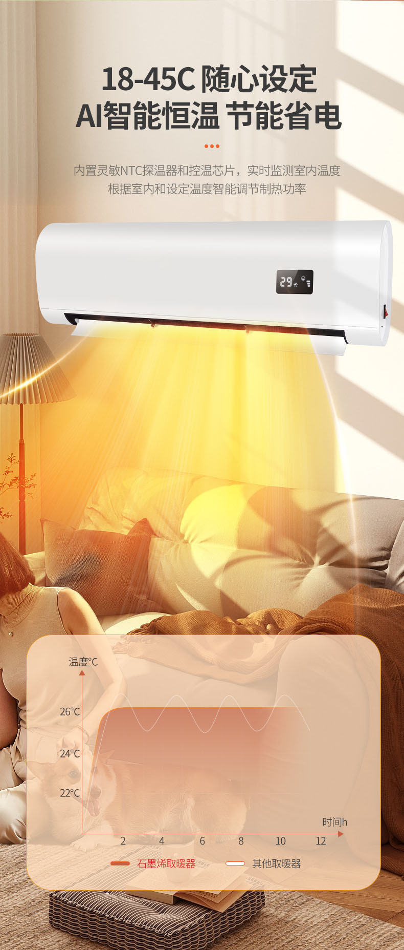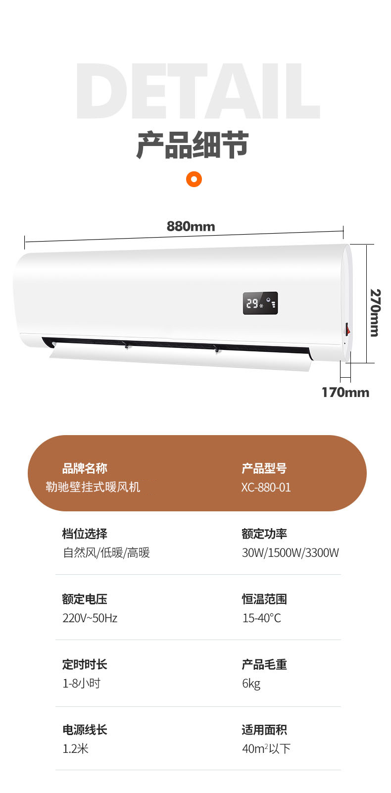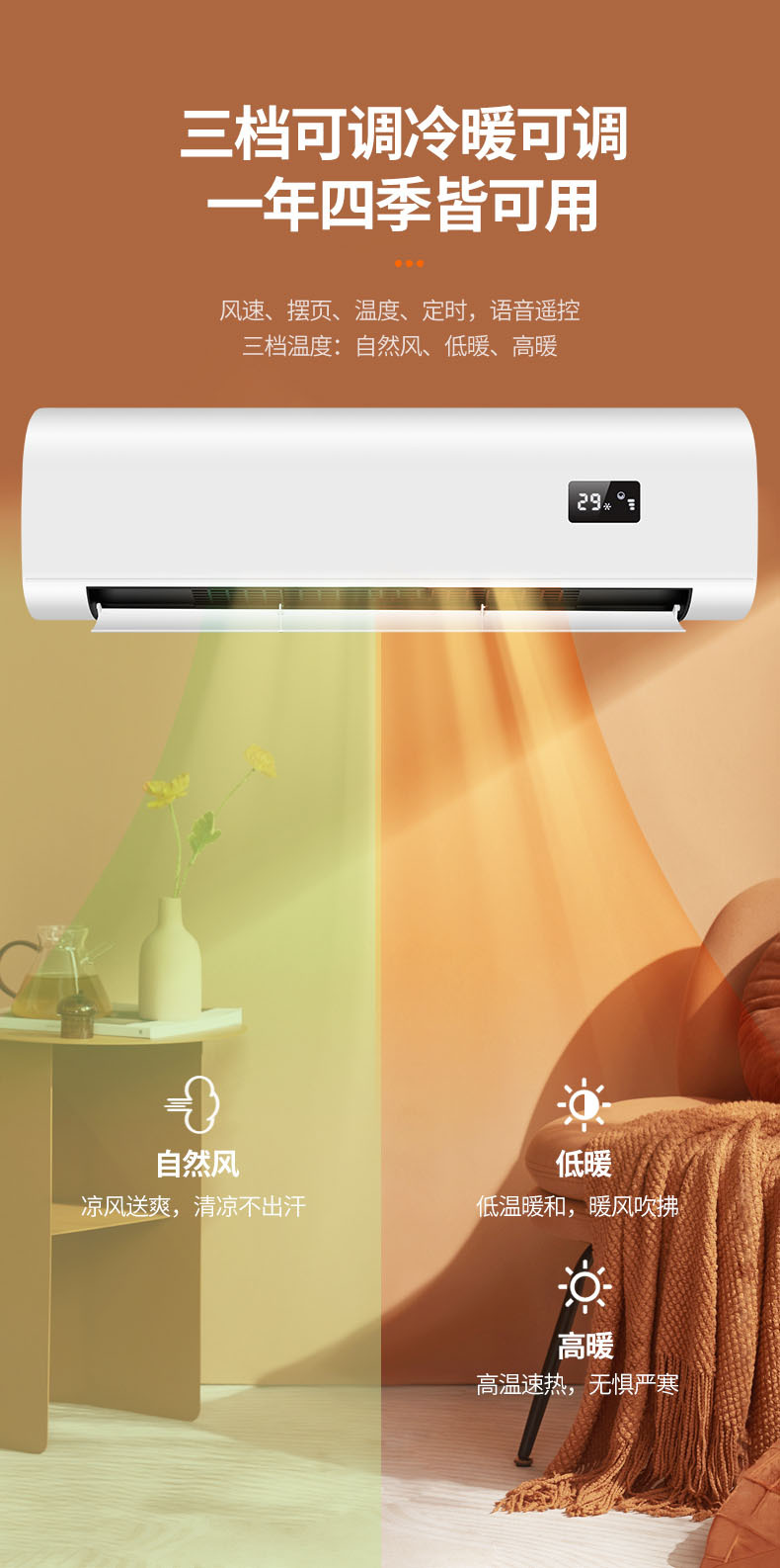 壁挂式暖风机冬季家用浴室暖风机定时语音功能3300w免打孔取暖器