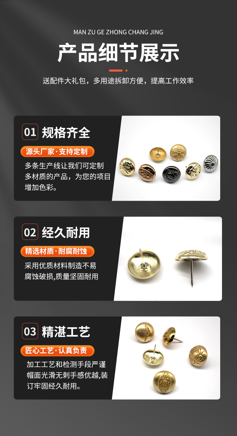 [ 商业 ] 厂家批发家具五金配件锌合金泡钉复古花纹大头钉软硬箱包装饰泡钉