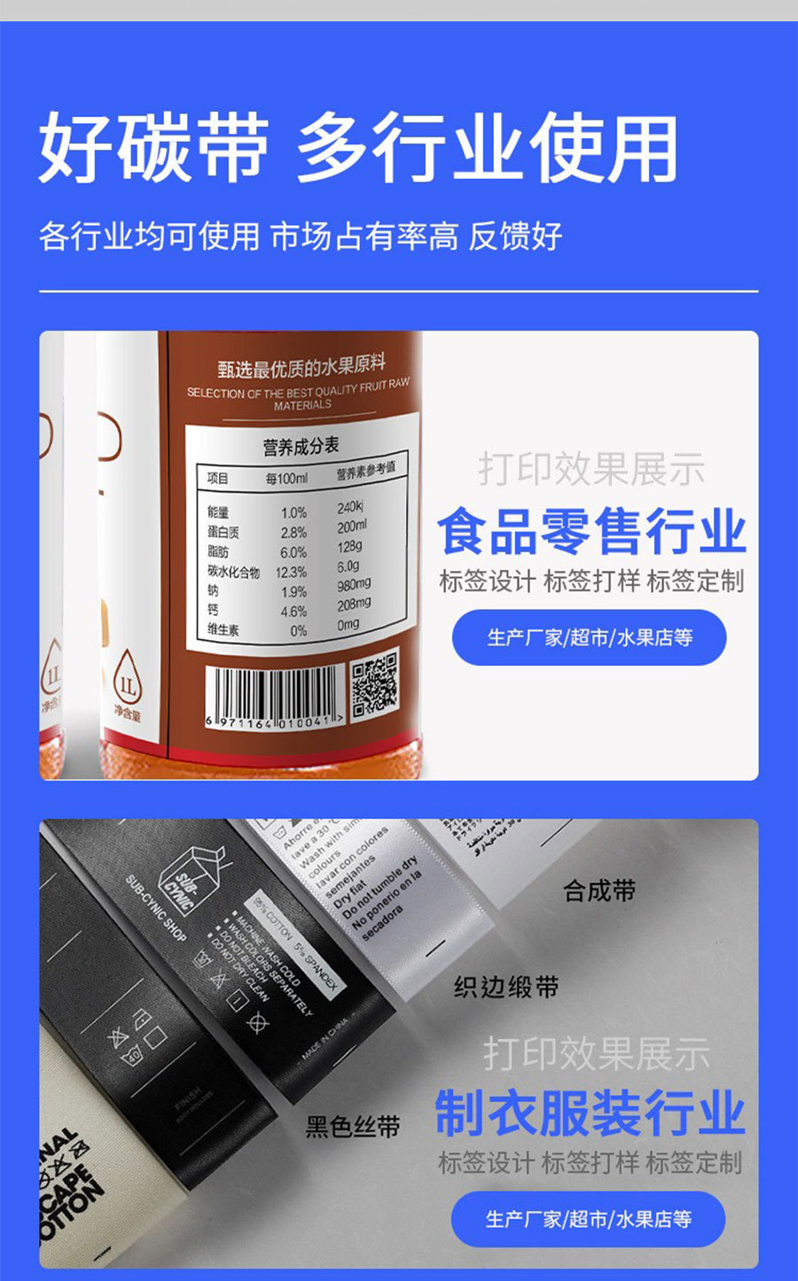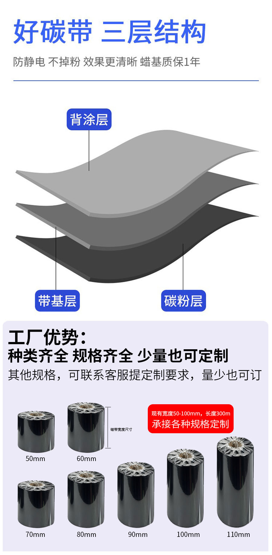 蜡基混合基全树脂碳带蜡带卷8090热转印打印色带110*300水洗碳带