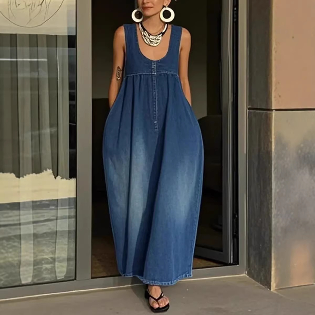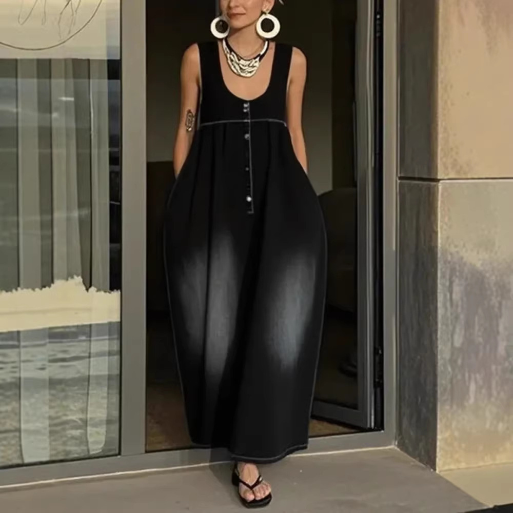 [ 商业 ] 新款欧美跨境美式休闲风无袖宽松长款连衣裙亚马逊速卖通热销