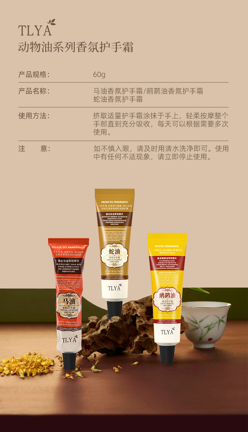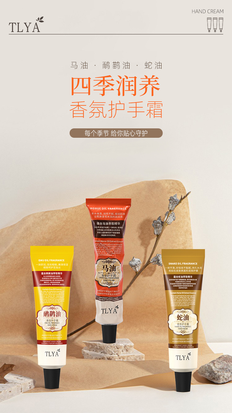 TLYA铝管香氛护手霜60g保湿补水不油腻滋润秋冬手部护理 厂家批发