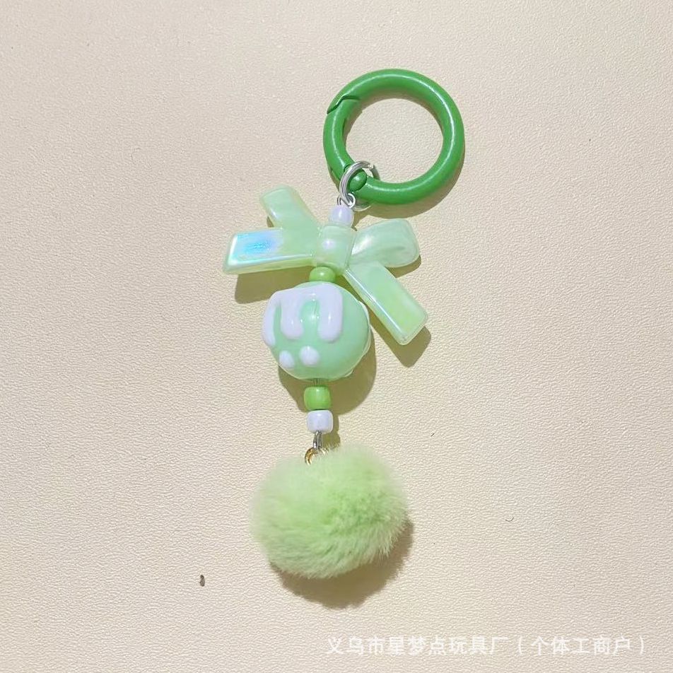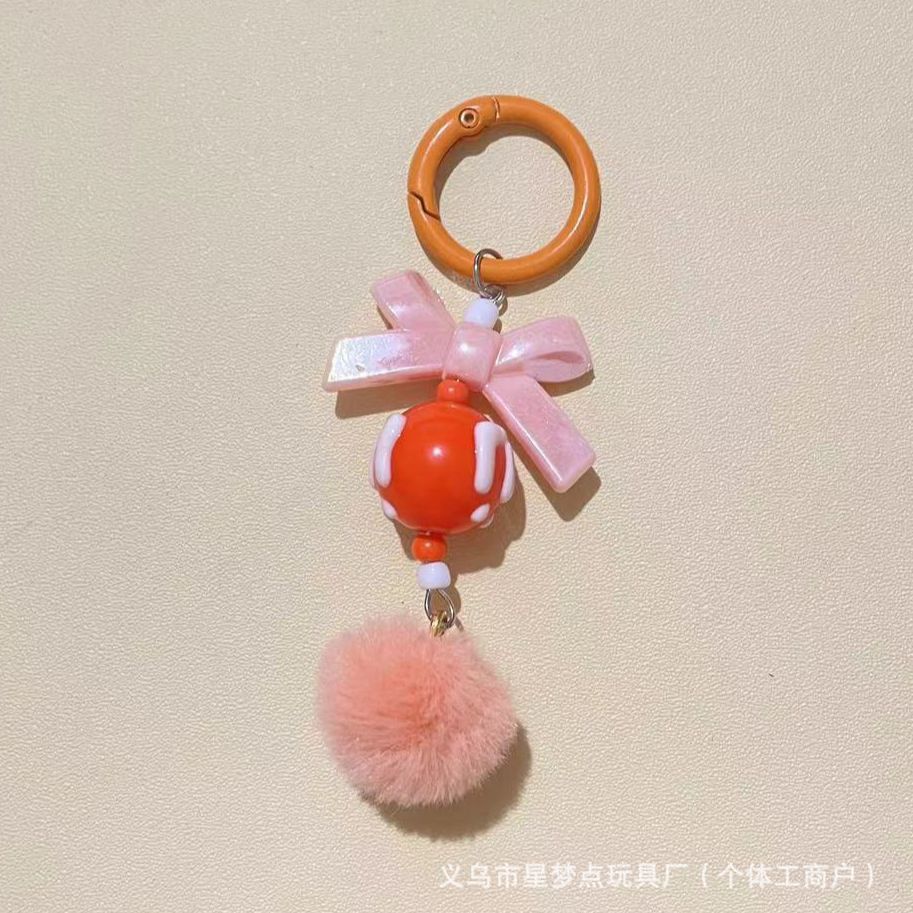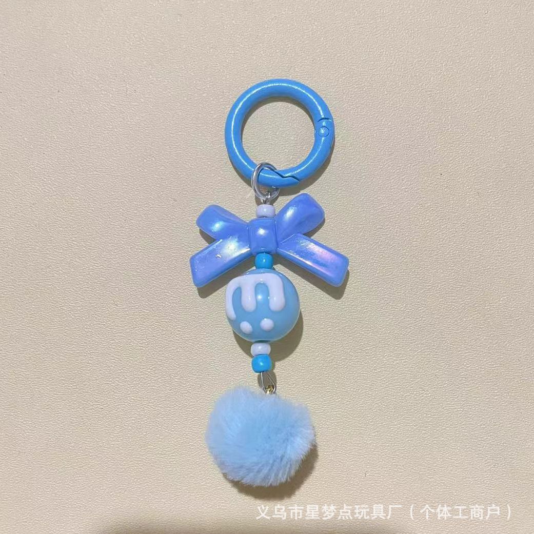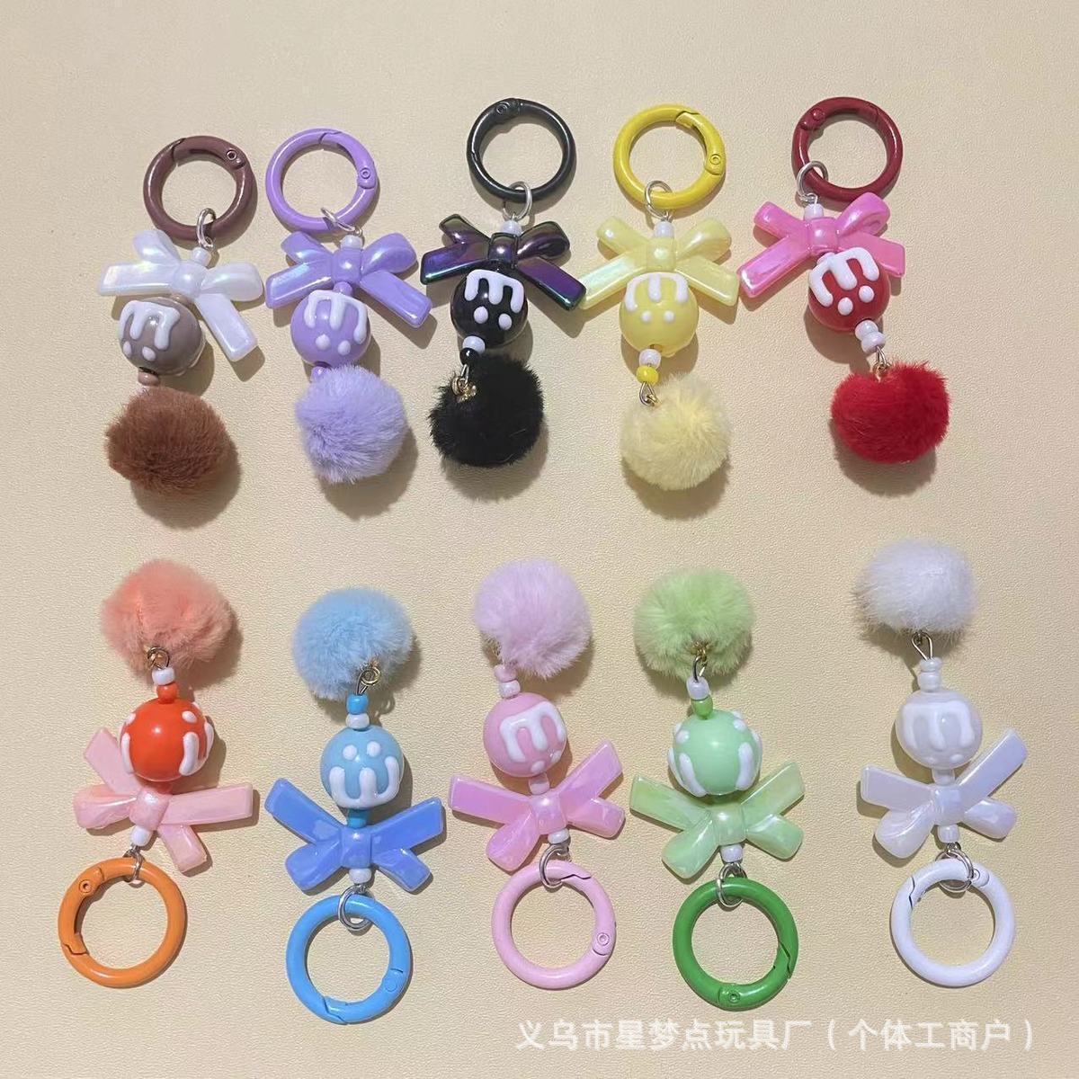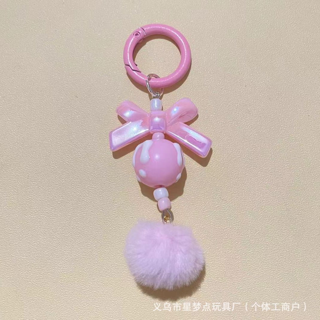 新款创意带龙虾扣毛球手机链串珠diy手工毛球链萌粒挂链钥匙扣