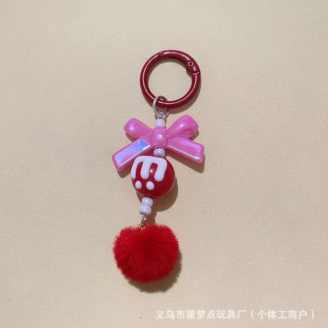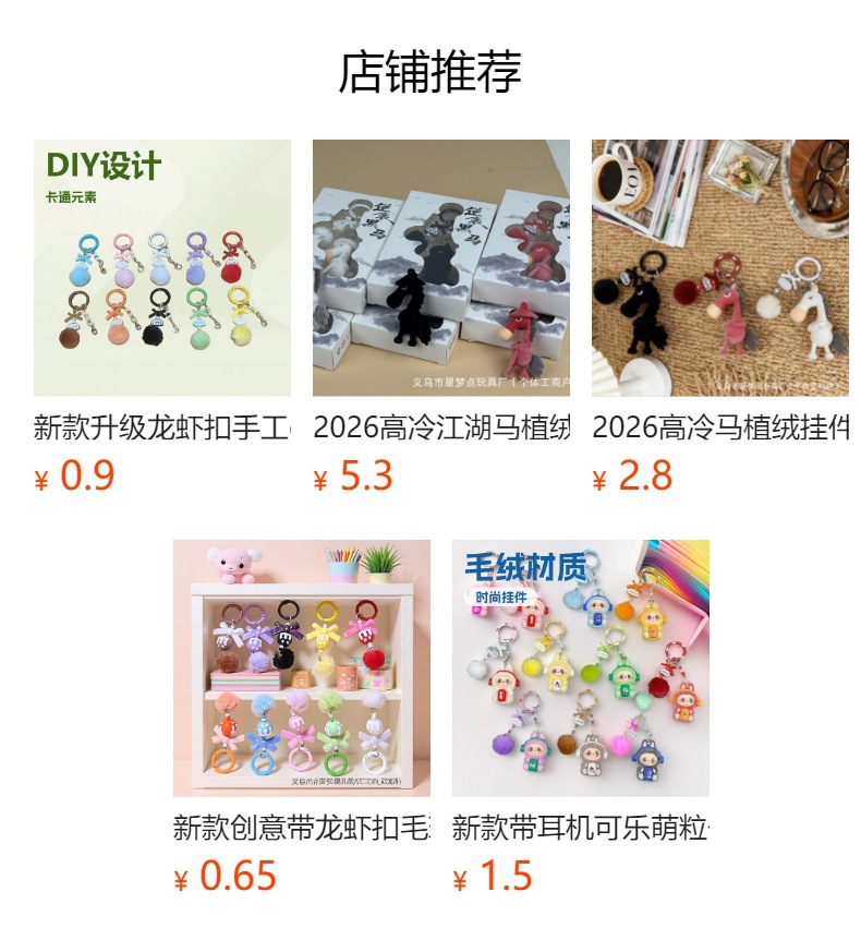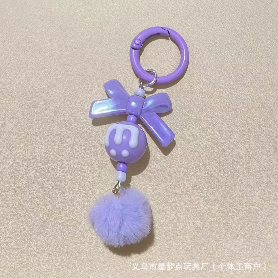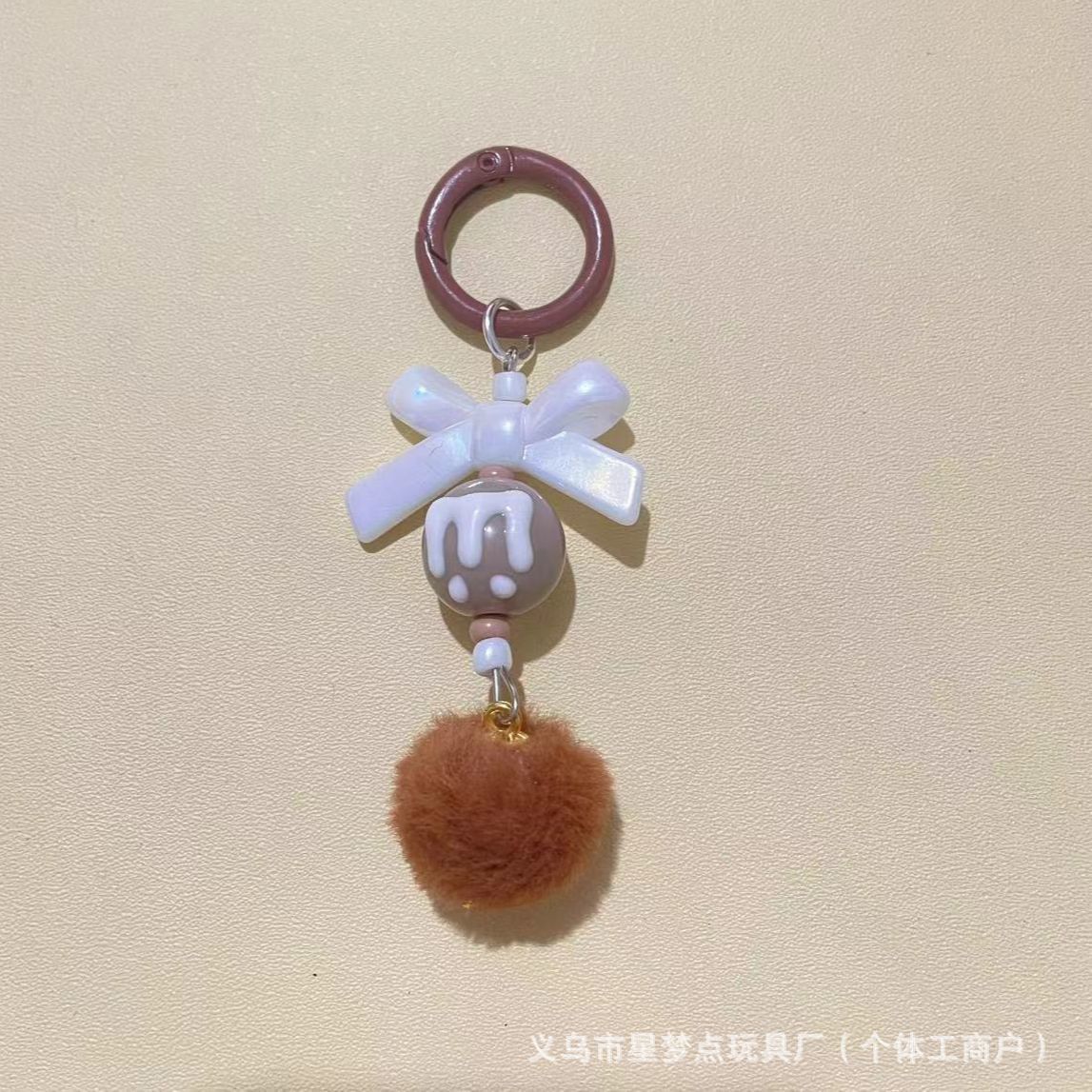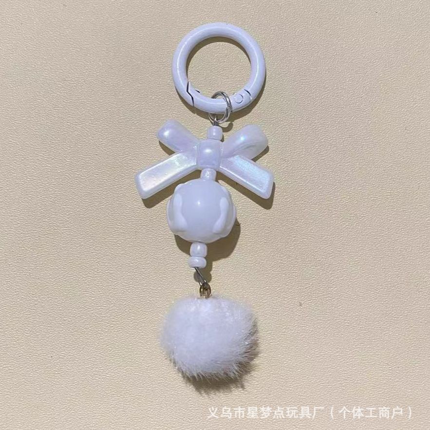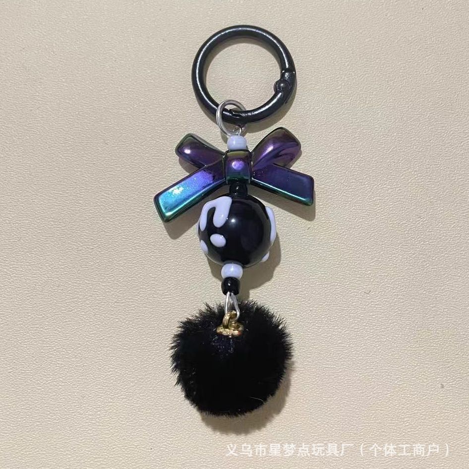 新款创意带龙虾扣毛球手机链串珠diy手工毛球链萌粒挂链钥匙扣