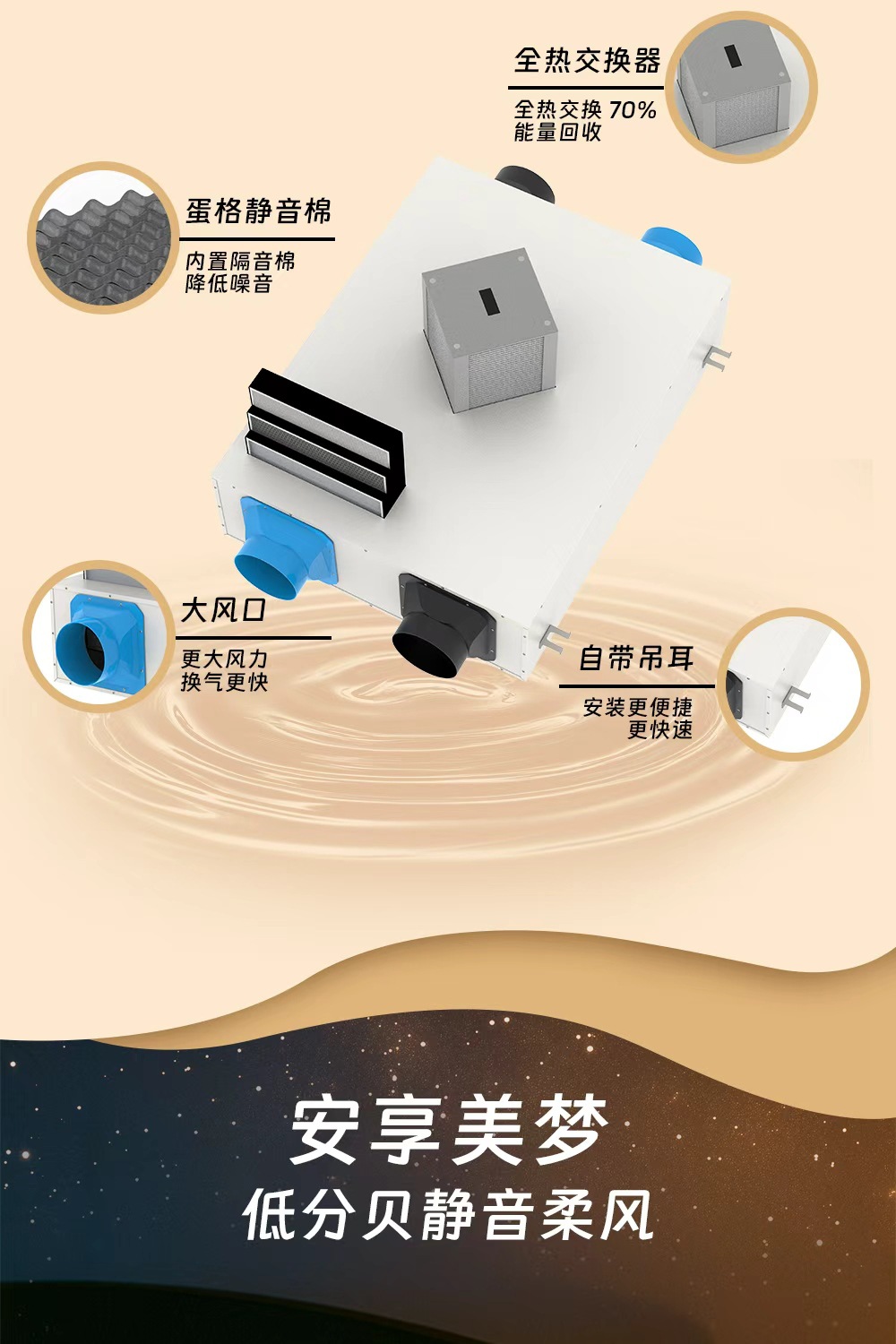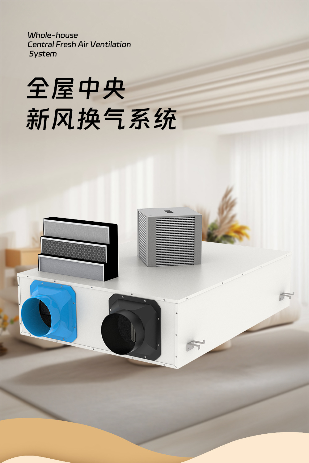 全热交换新风系统家用全屋净化新风机双向流送排风新风换气机商用