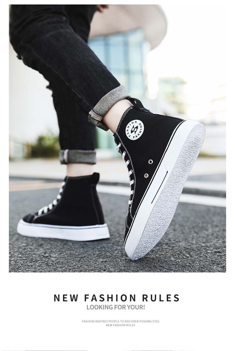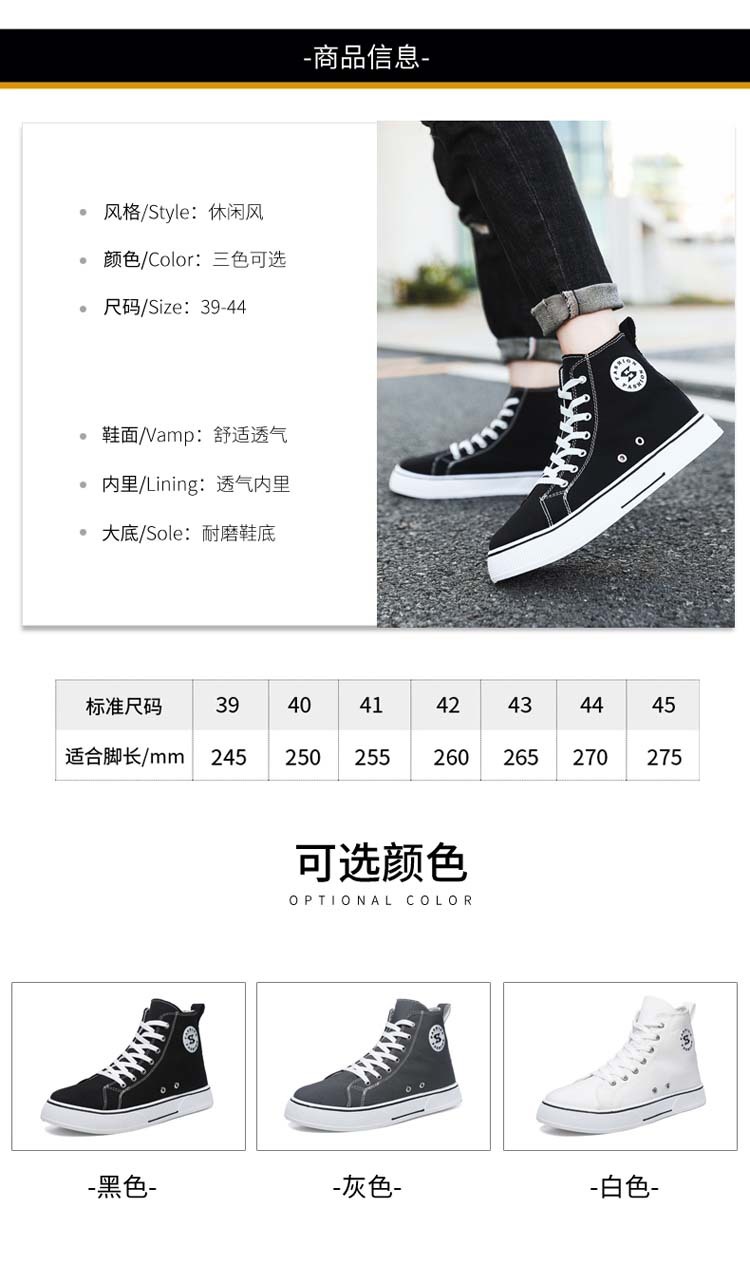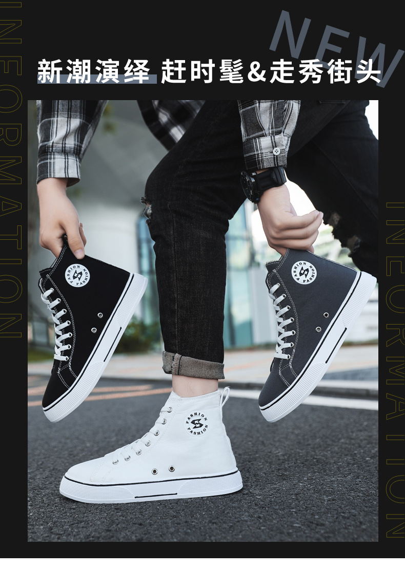 批发高帮帆布鞋大码青少年新款学生潮鞋原宿风舒适百搭休闲鞋男鞋
