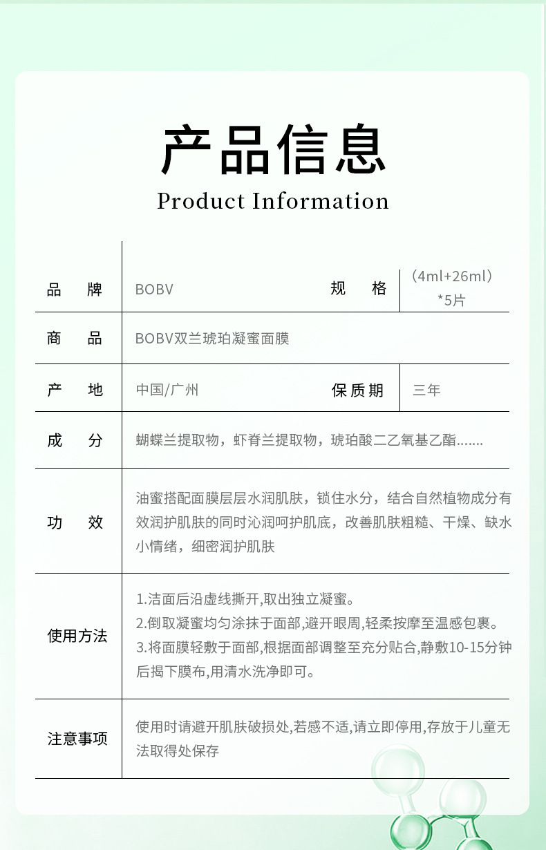 BOBV双兰琥珀凝蜜面膜补水保湿焕亮肌肤提拉紧致滋润舒缓抗皱面膜