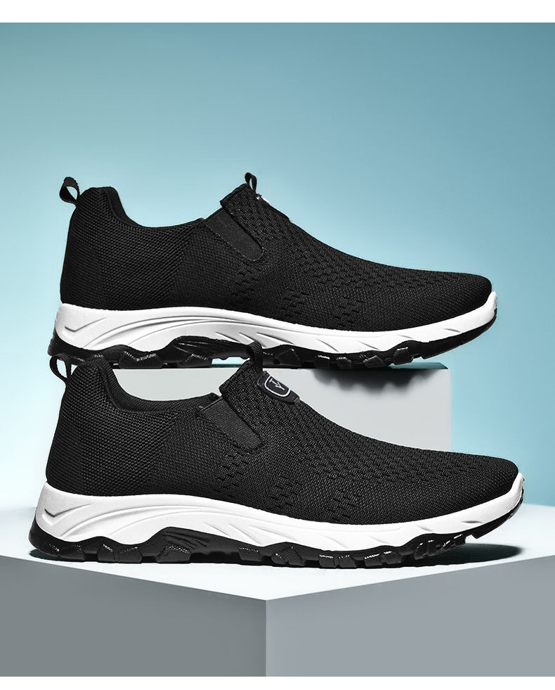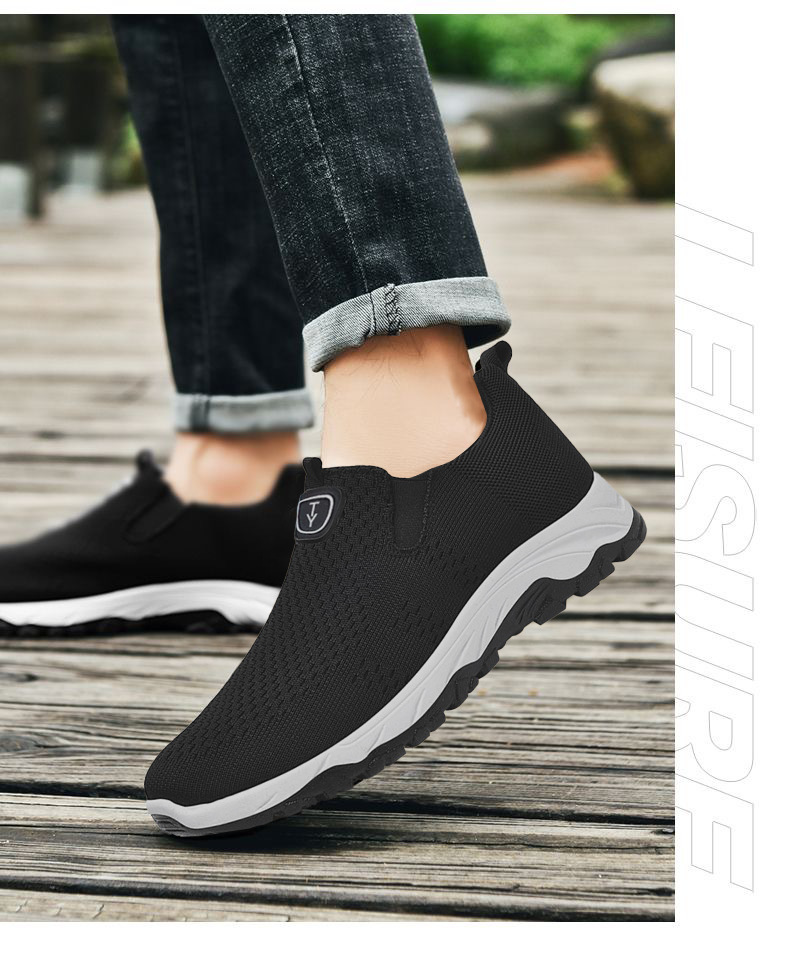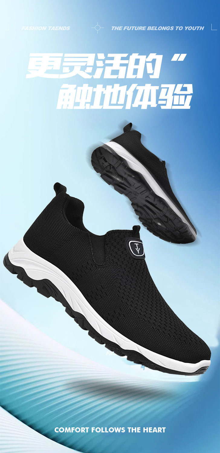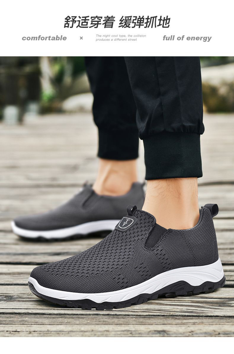 外贸新款飞织透气一脚蹬休闲鞋子男鞋男士懒人鞋老北京布鞋老人鞋