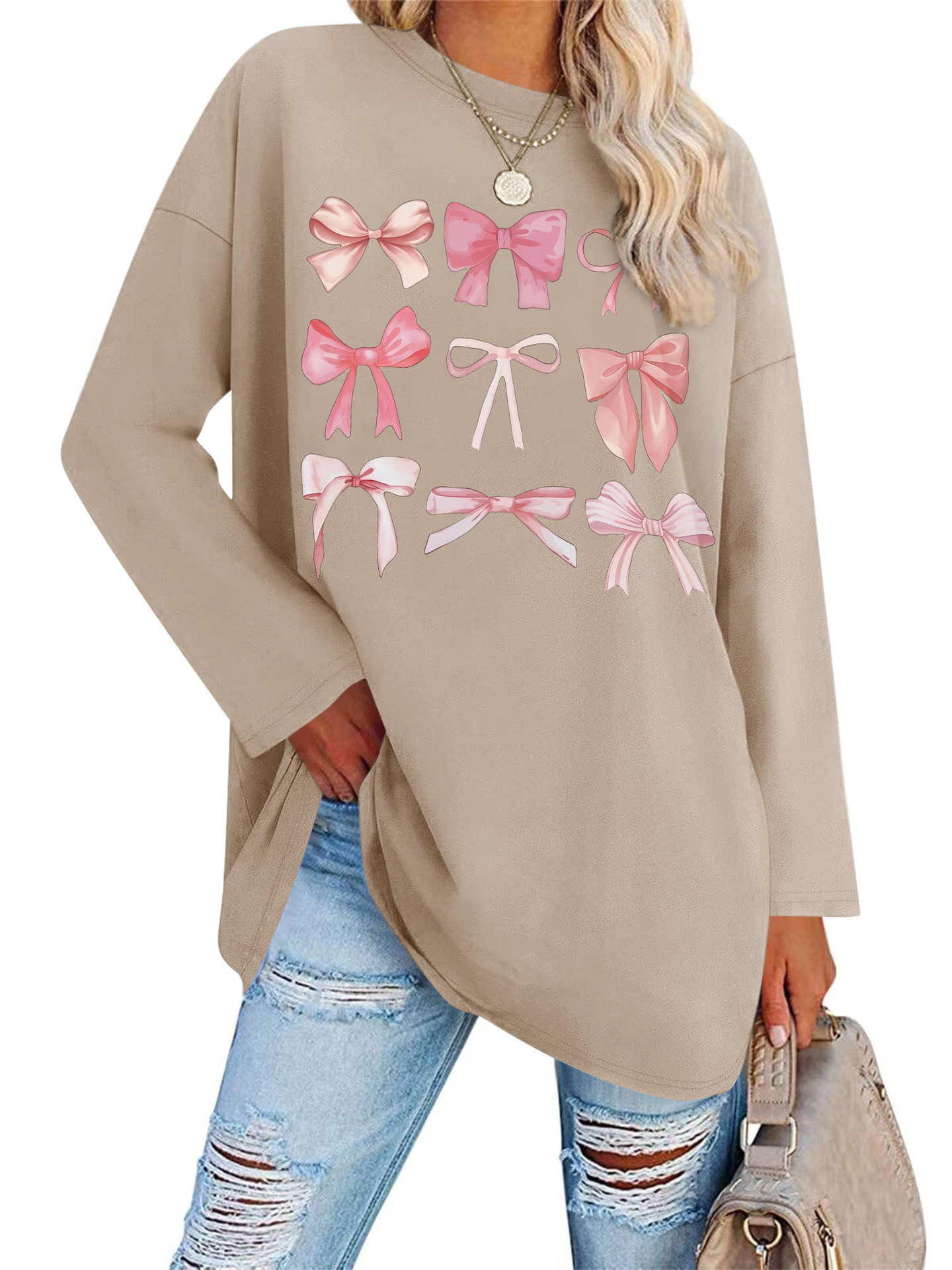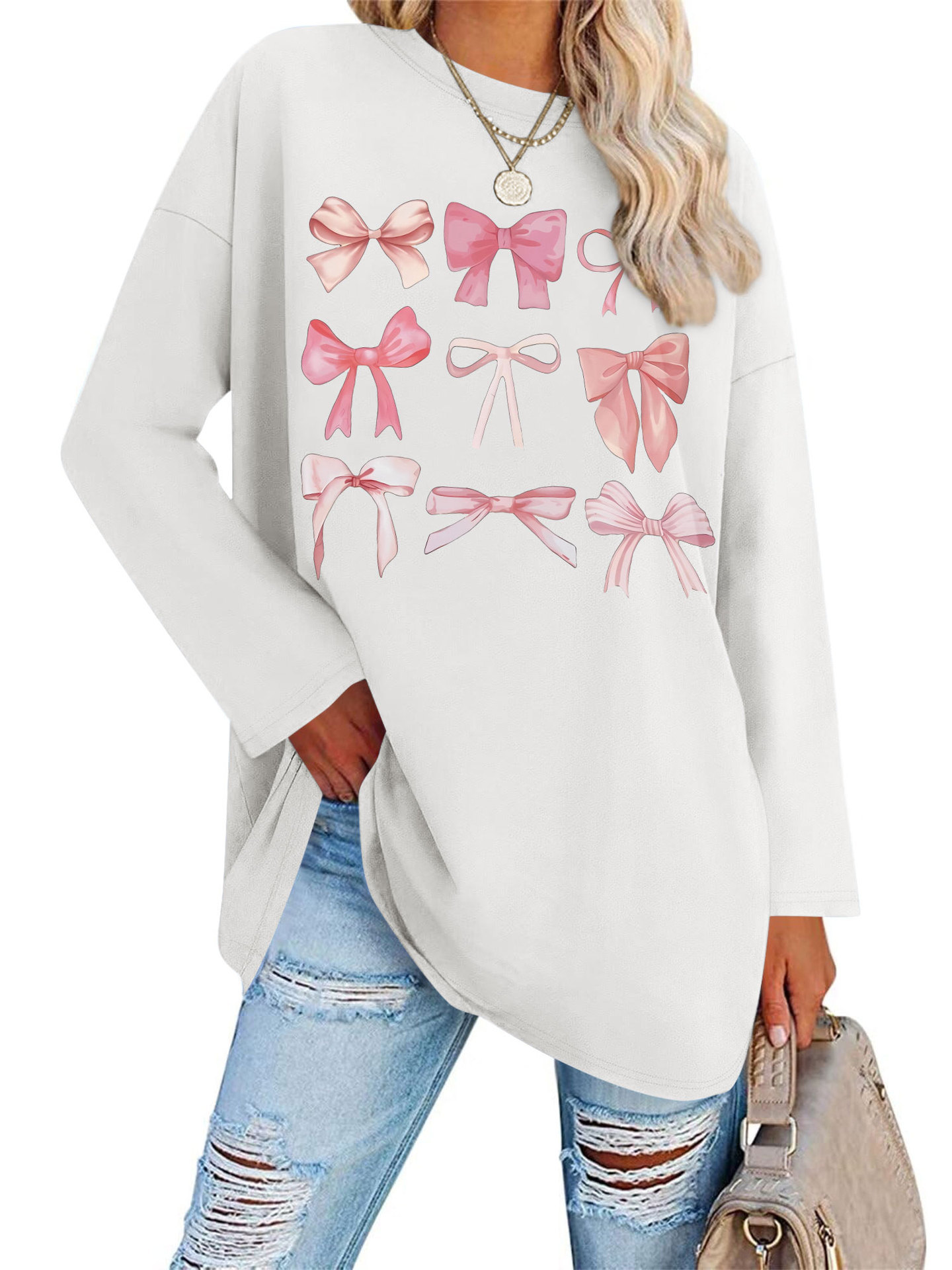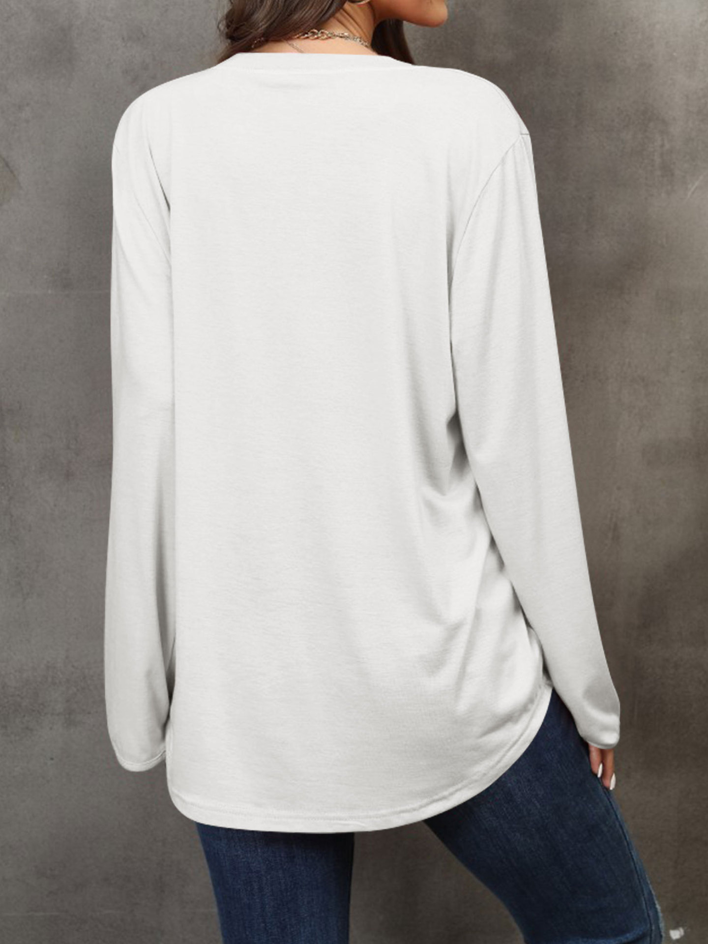 2023欧美跨境女士t恤亚马逊宽松字母印花落肩袖圆领长袖上衣