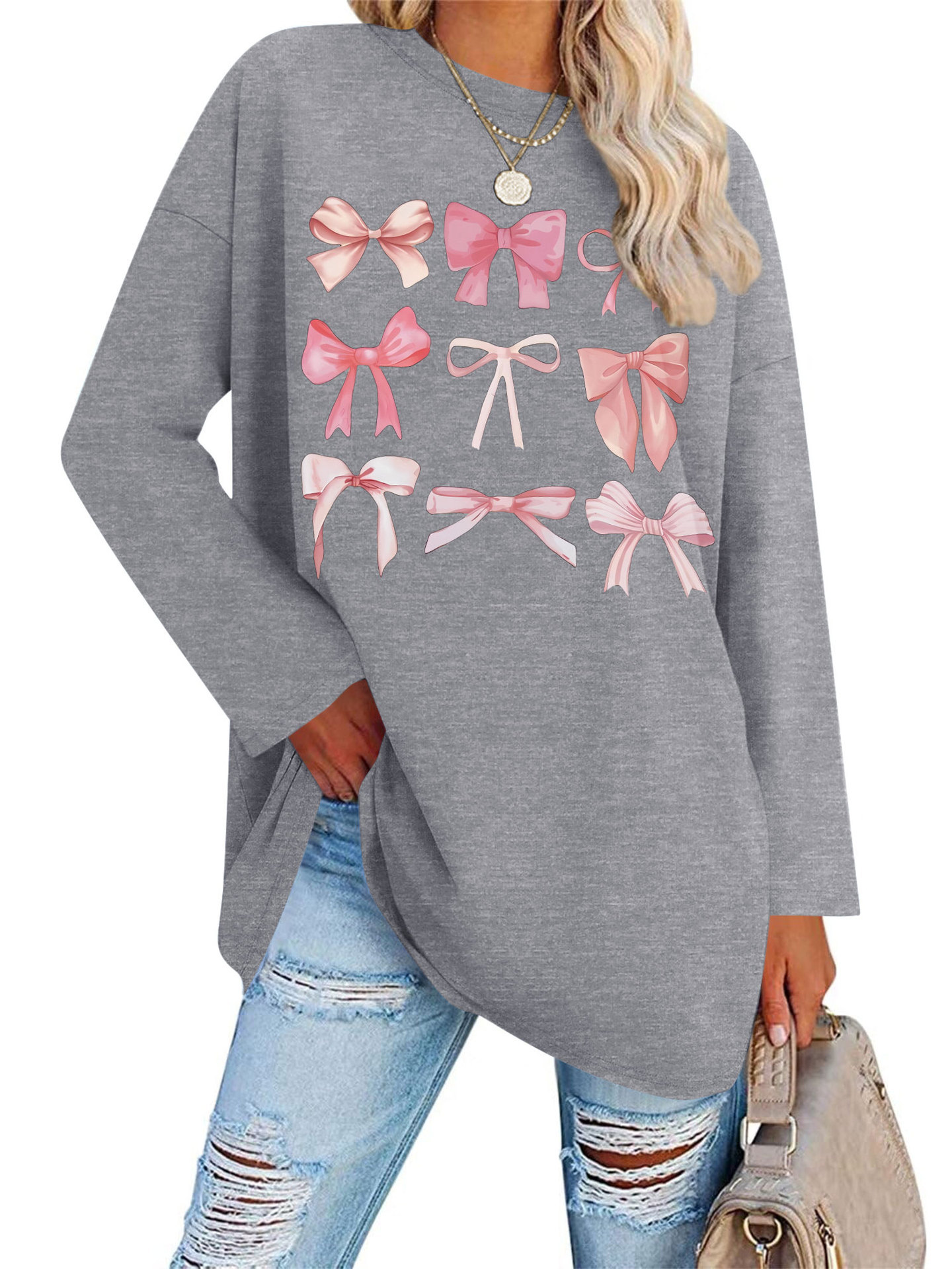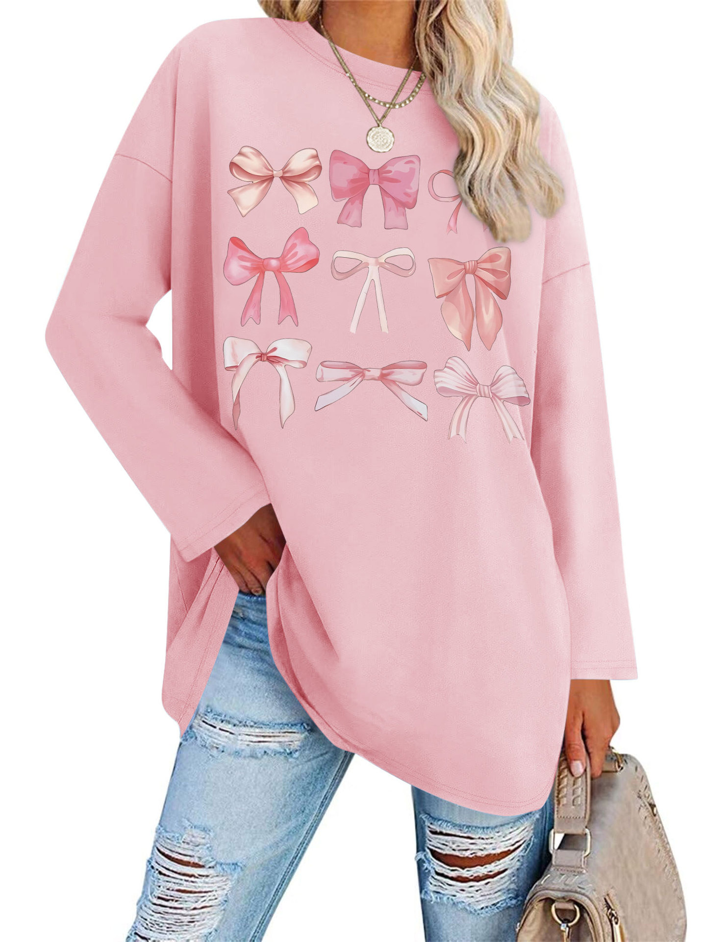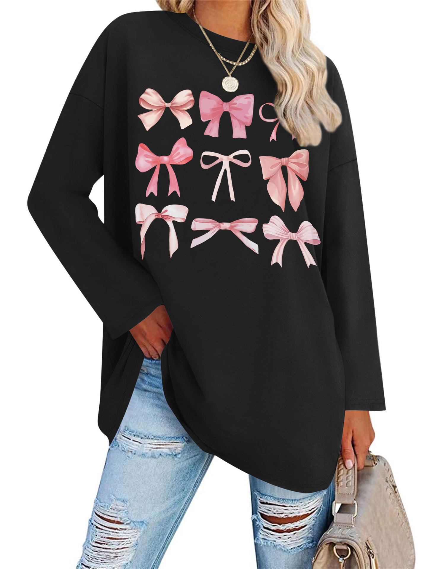 2023欧美跨境女士t恤亚马逊宽松字母印花落肩袖圆领长袖上衣