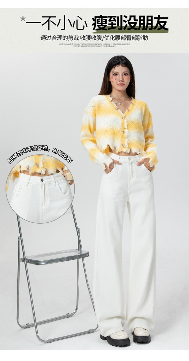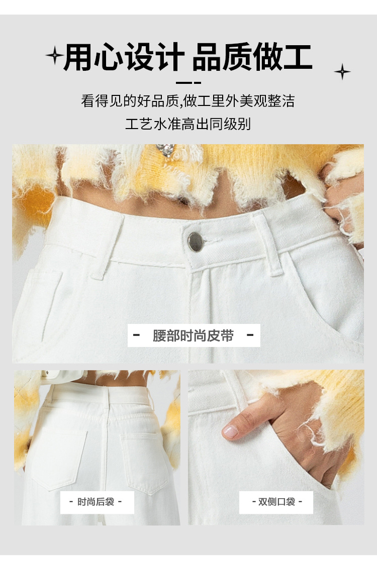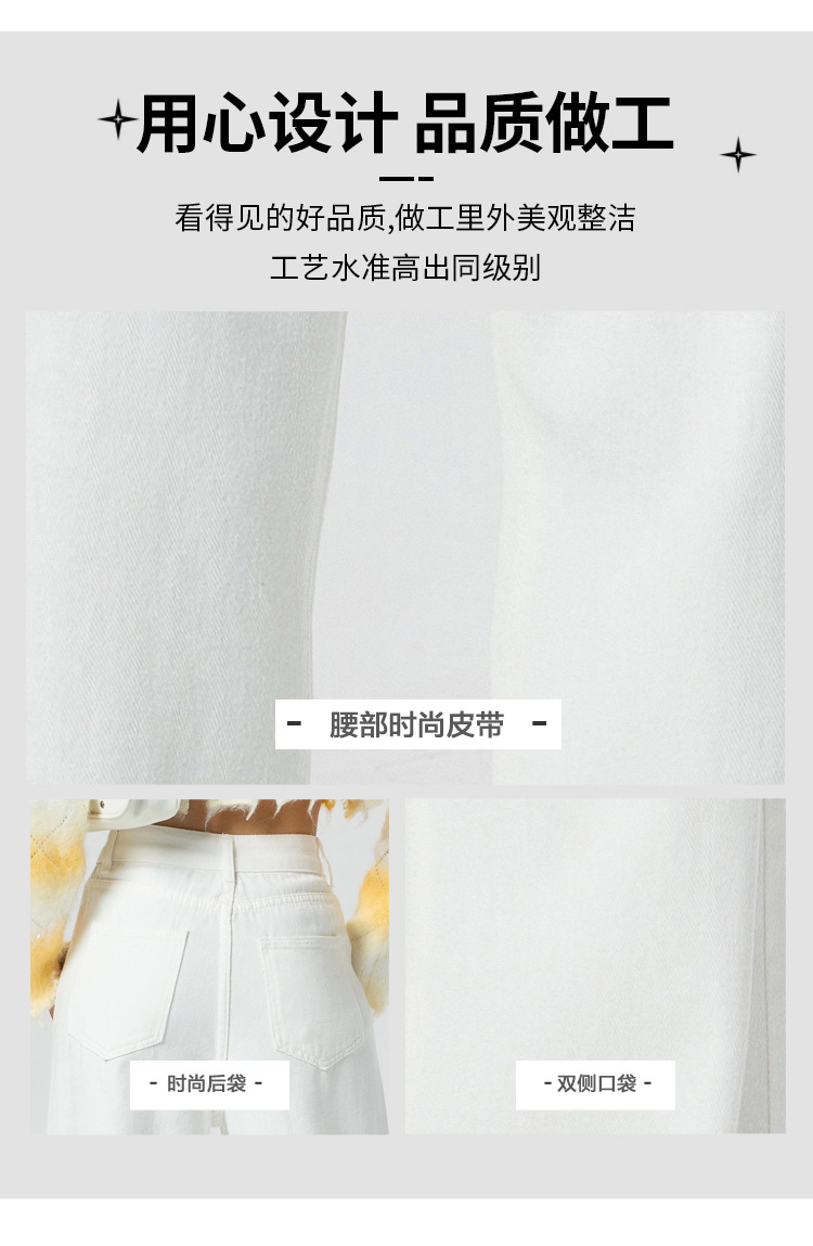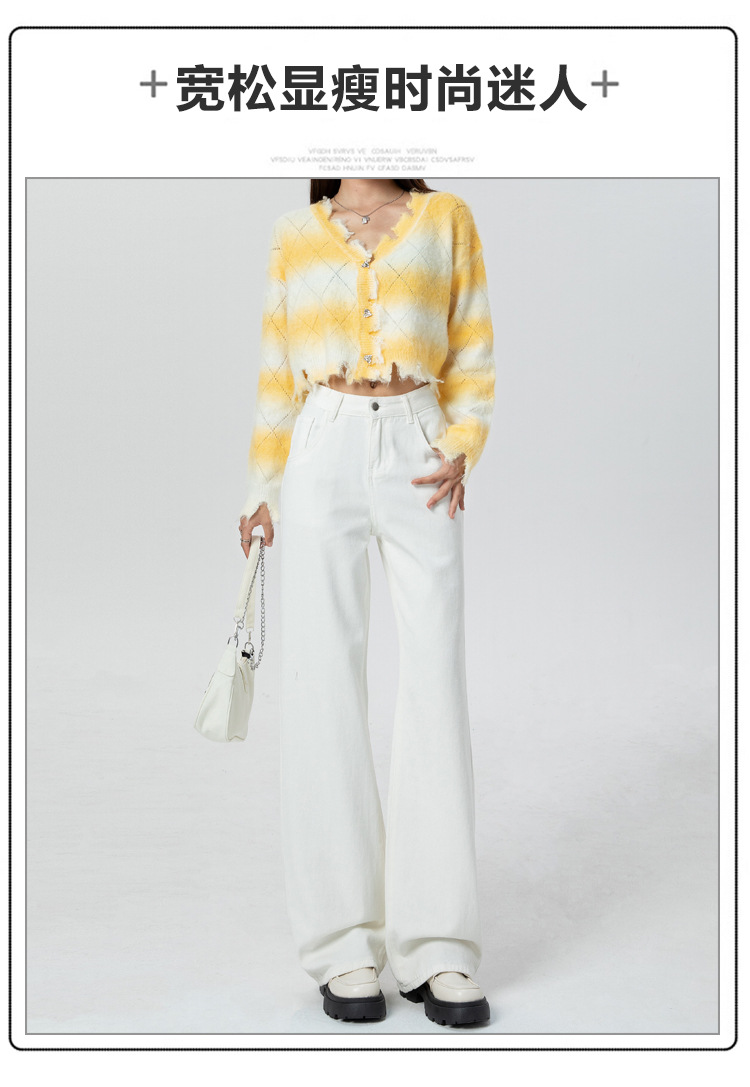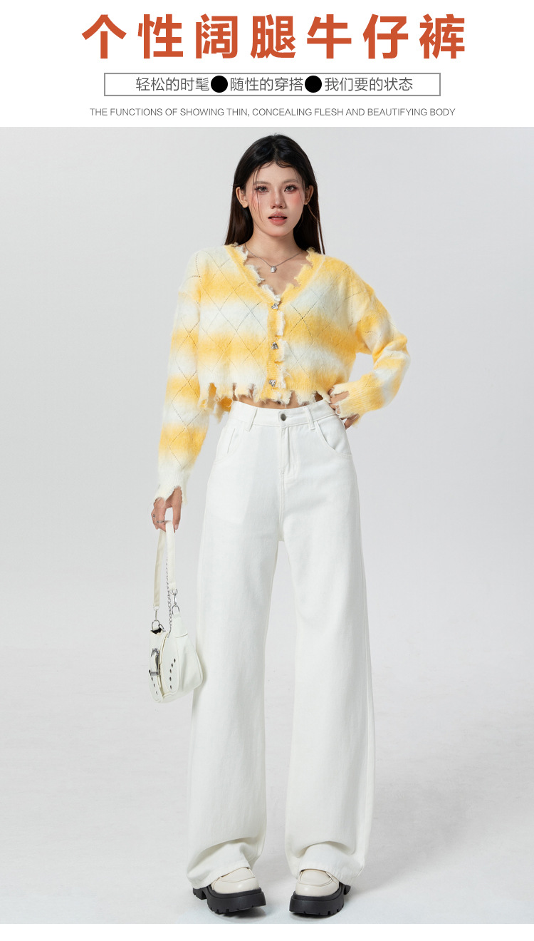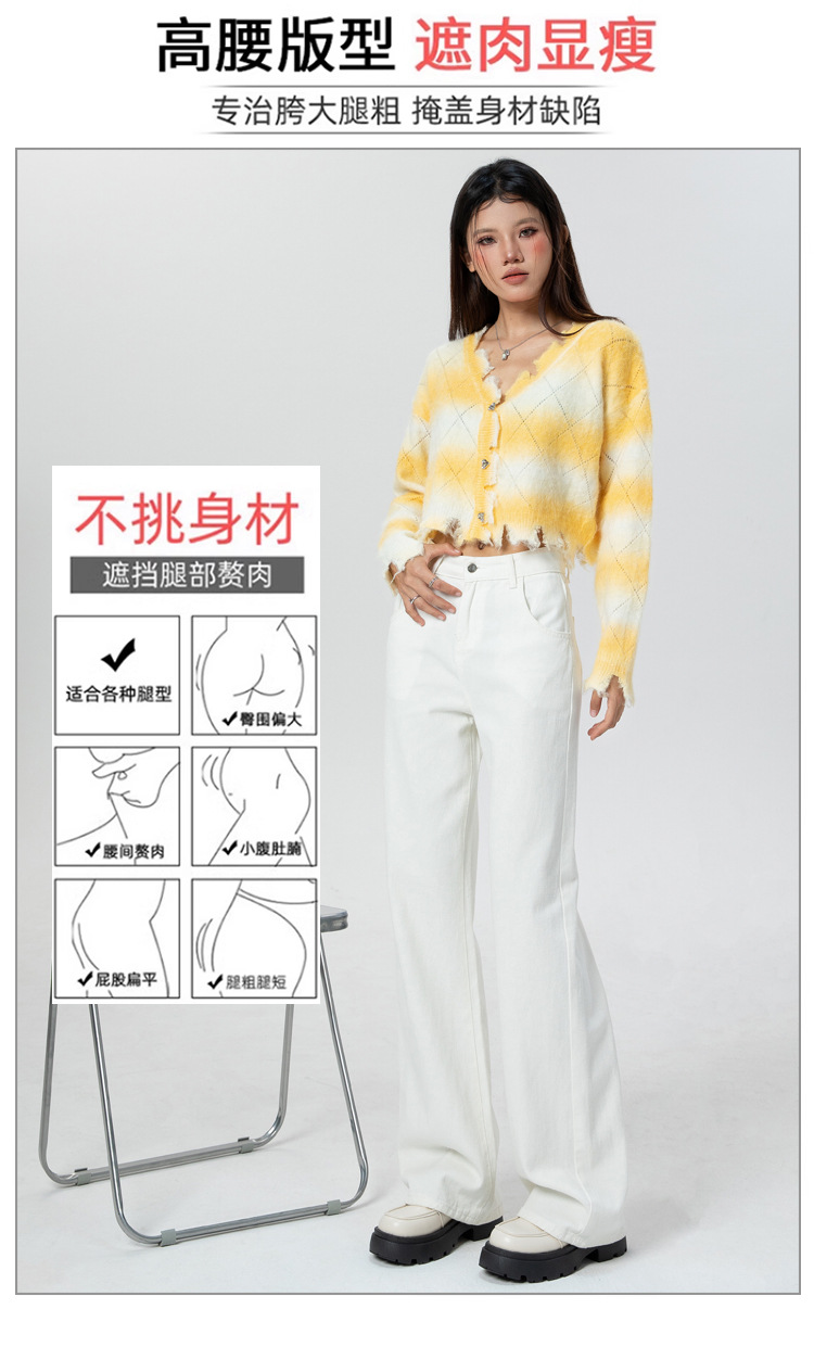 2025年秋冬季新款白色牛仔长裤女韩版高腰宽松垂感百搭阔腿拖地裤