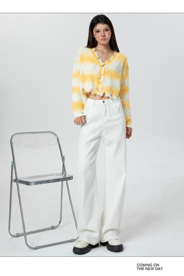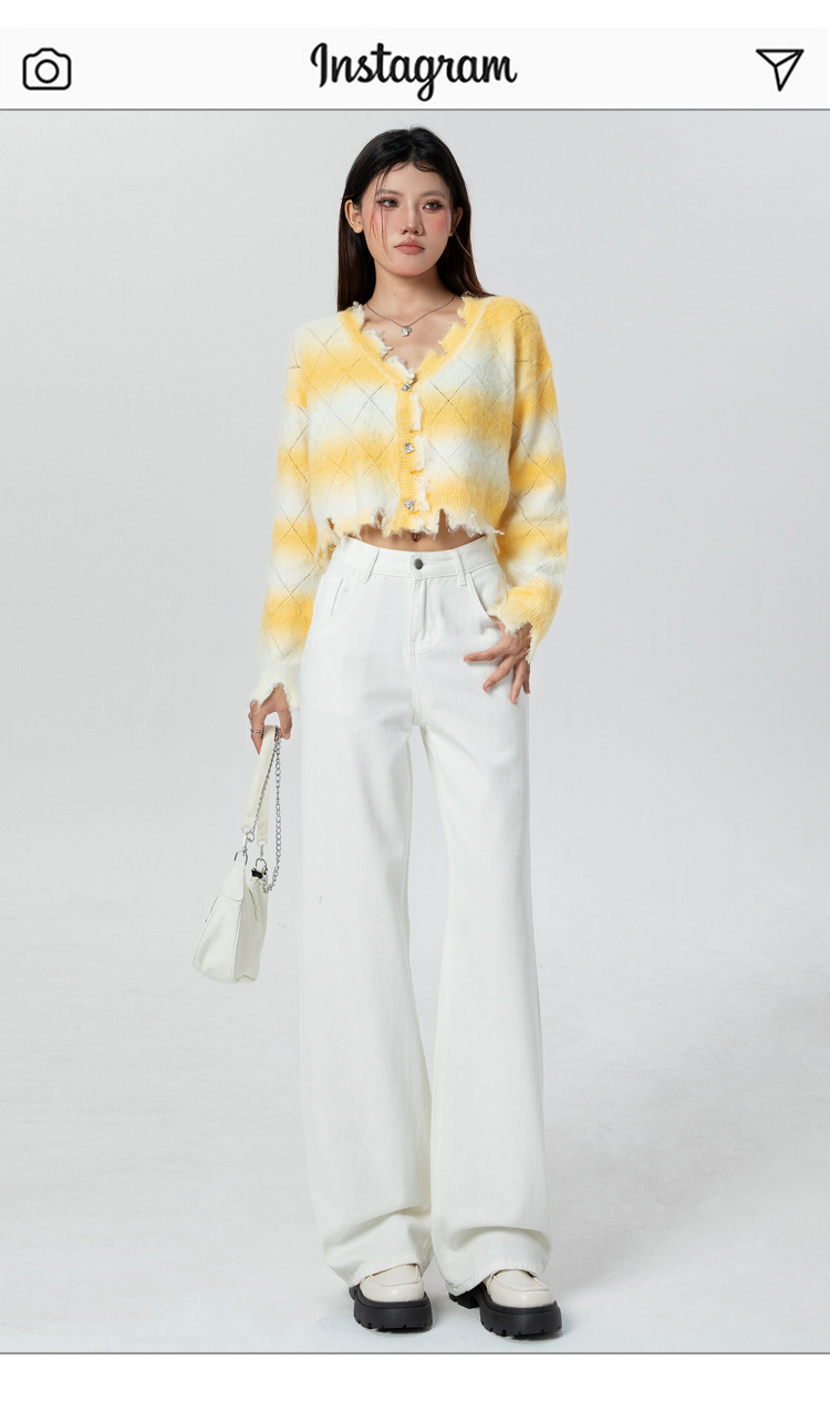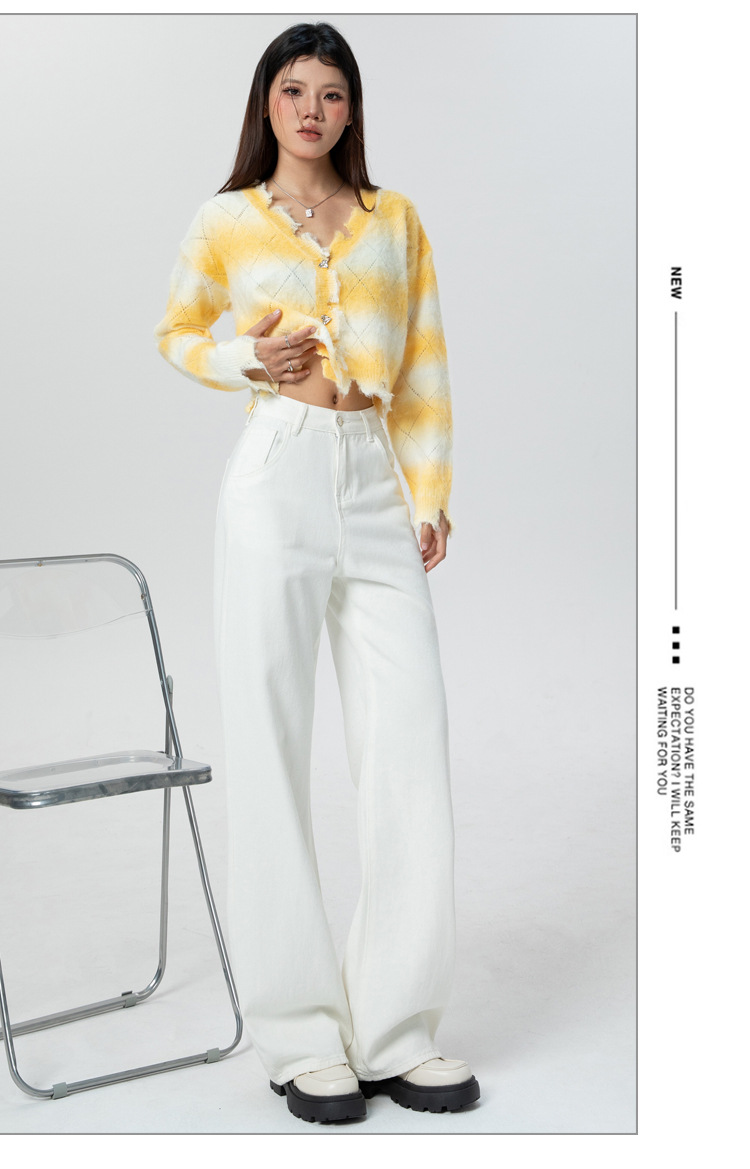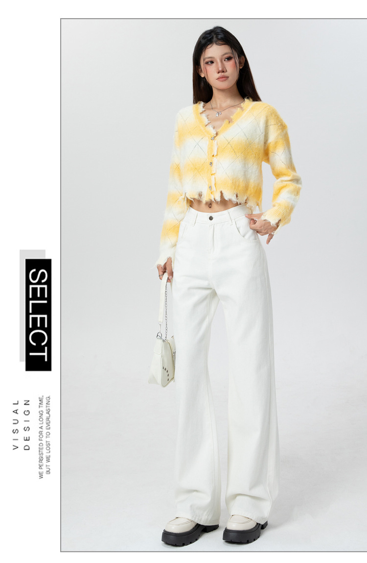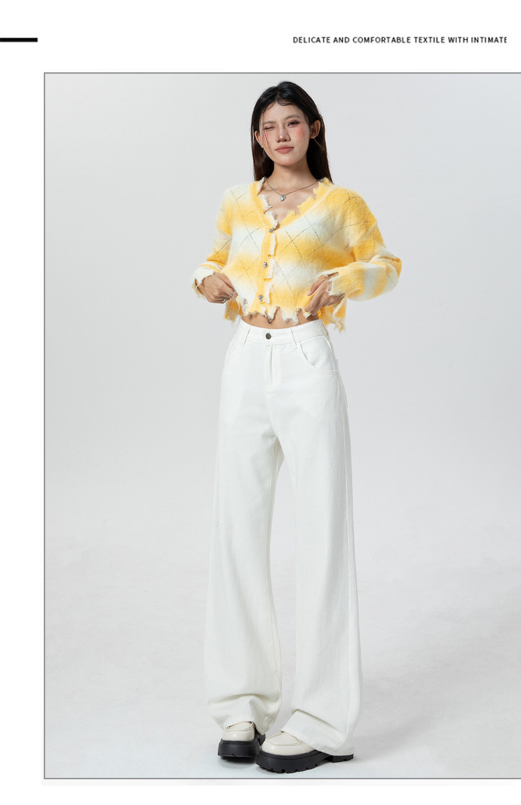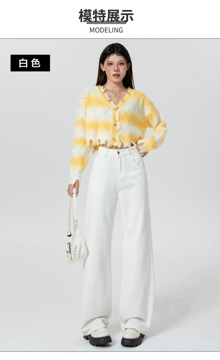 2025年秋冬季新款白色牛仔长裤女韩版高腰宽松垂感百搭阔腿拖地裤