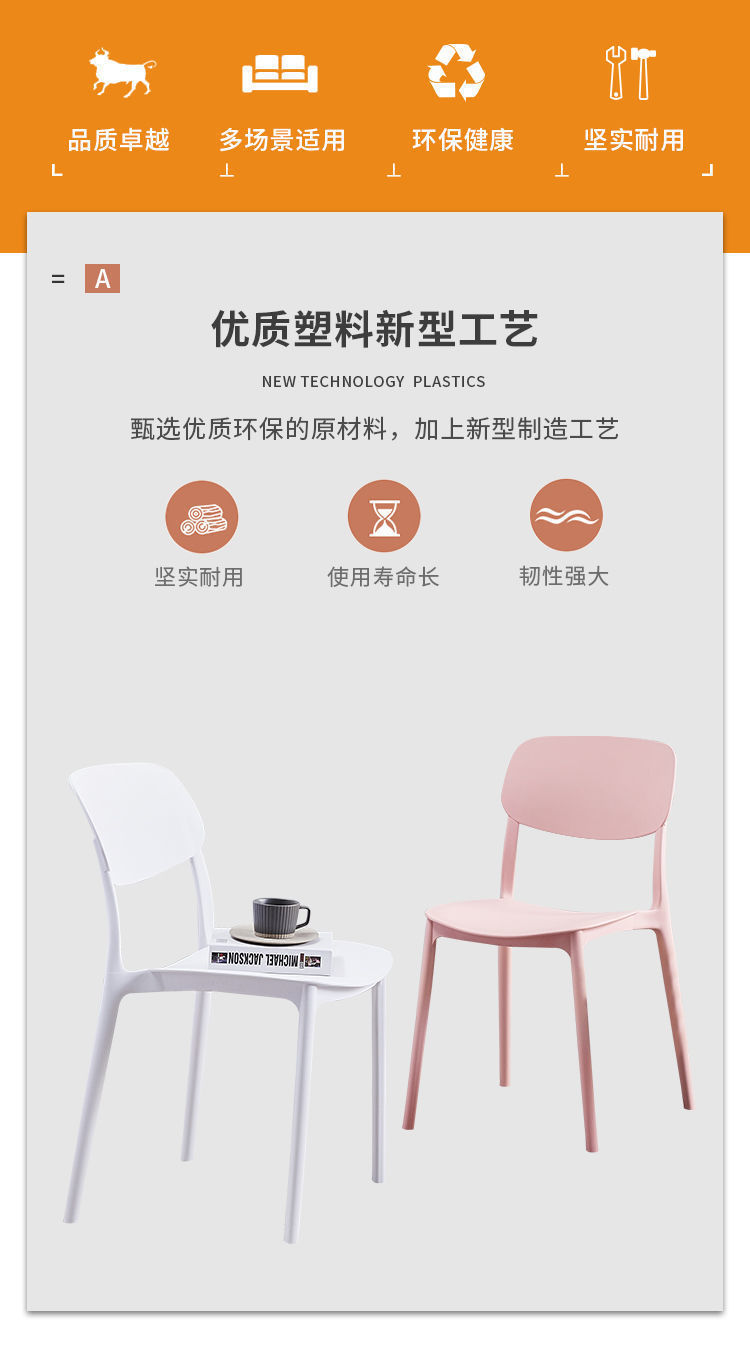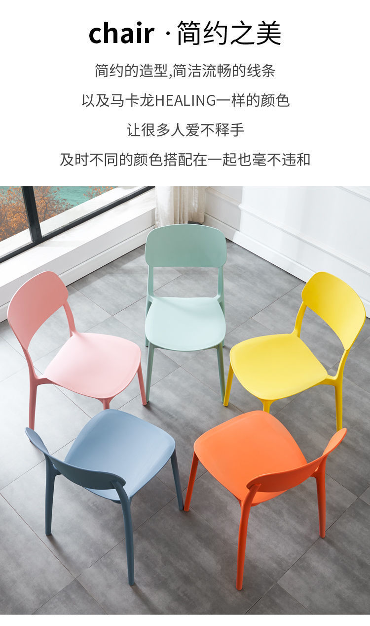家用休闲塑料椅子简约北欧餐椅塑料椅子方背椅单人椅子咖啡厅餐椅