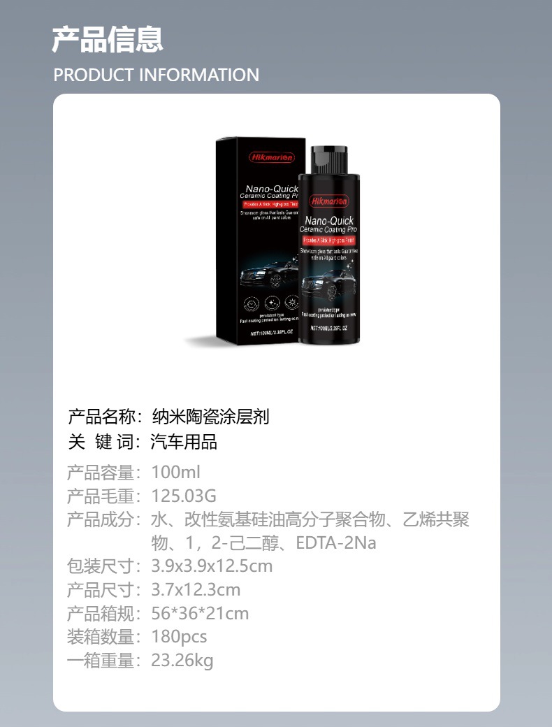 Hikmarion纳米陶瓷涂层剂 汽车表面涂层抛光翻新增亮日常清洁养护