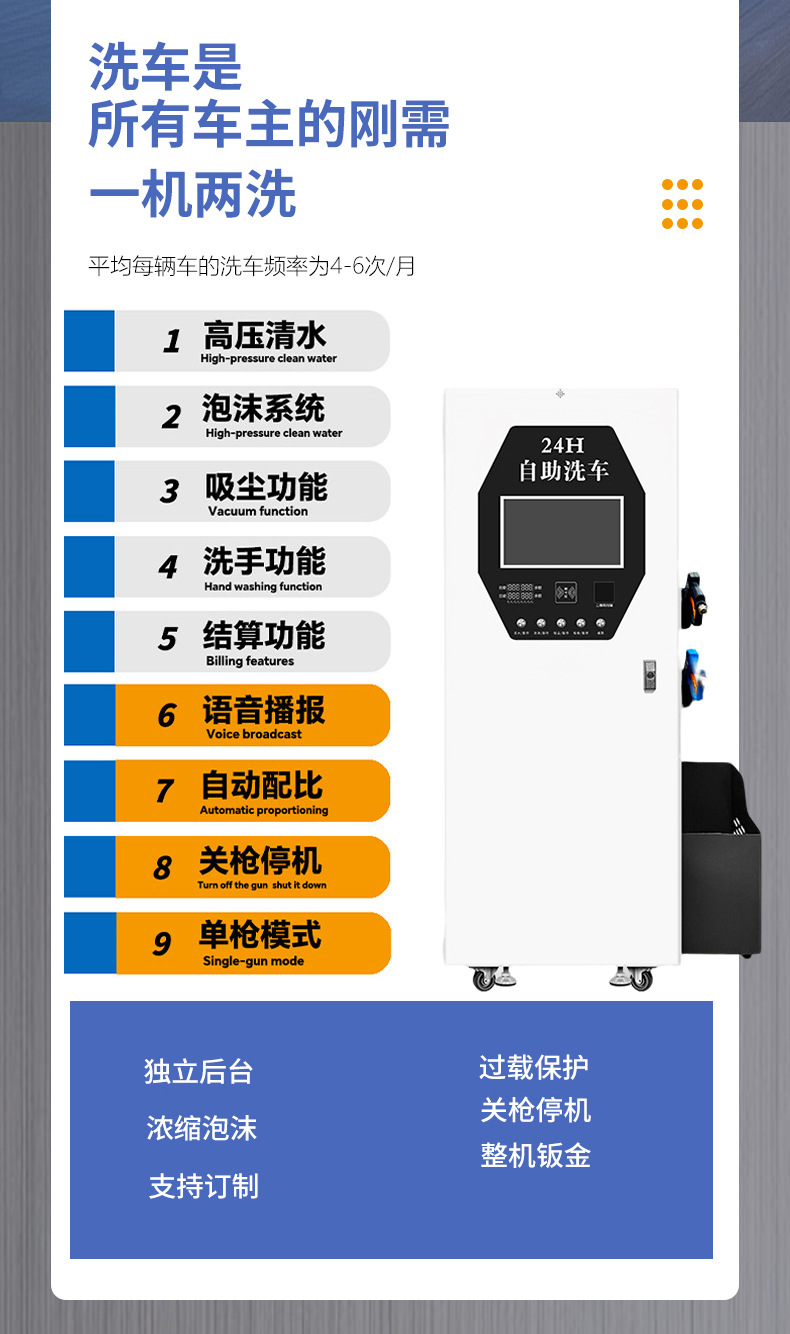 商用24小时投币扫码刷卡全自动小区创业共享洗车机设备自助洗车