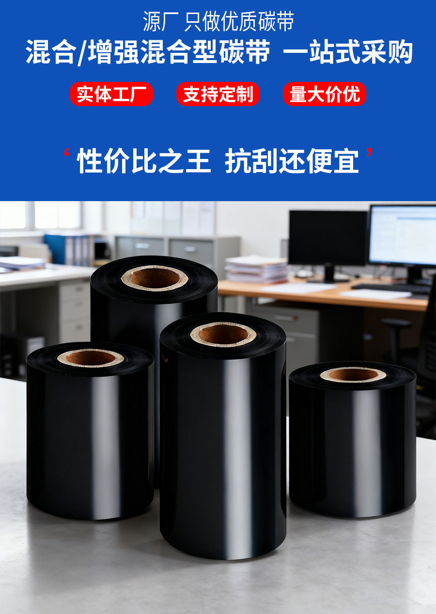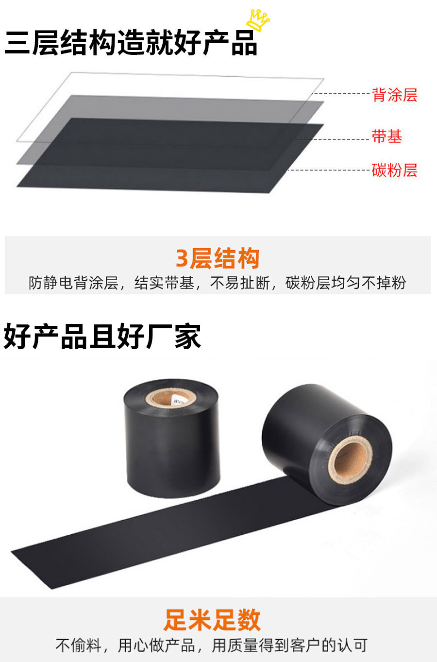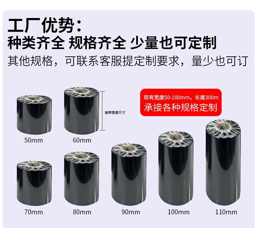 全树脂碳带蜡基混合基碳带卷110*300铜版纸热转印条码打印机色带
