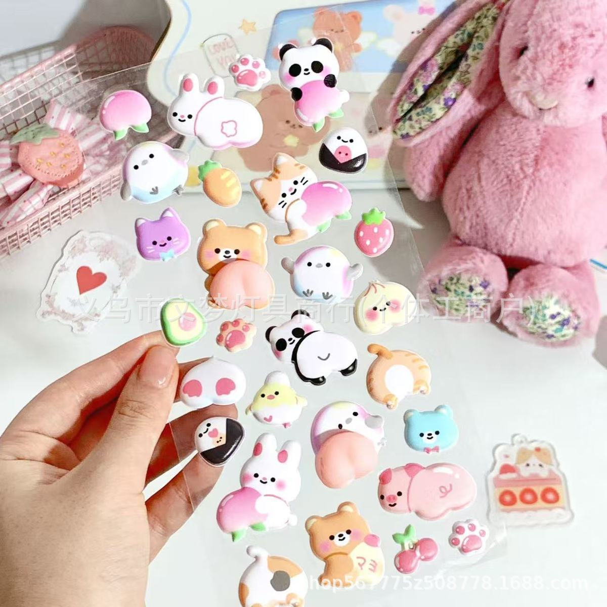 [ 商业 ] 可爱兔子贴纸立体屁屁贴儿童女孩水杯手机壳装饰捏捏乐贴画批发