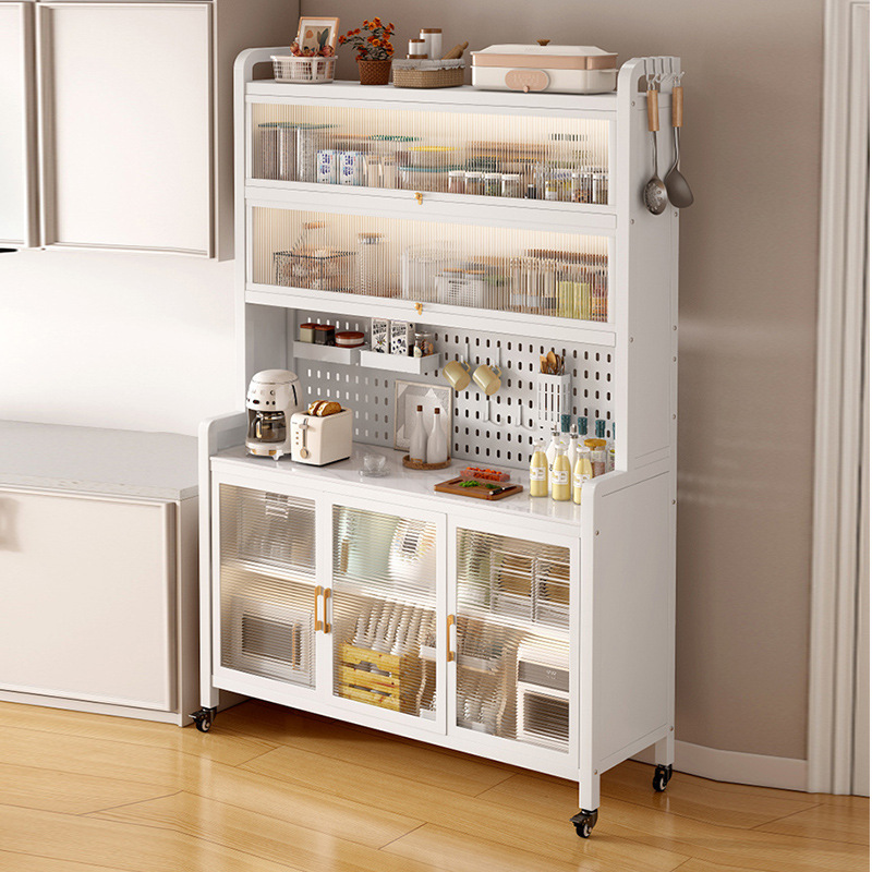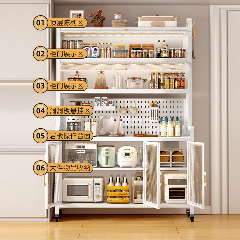 厨房储物柜碗柜落地岩板餐边柜多层烤箱电器收纳洞洞板厨具收纳柜