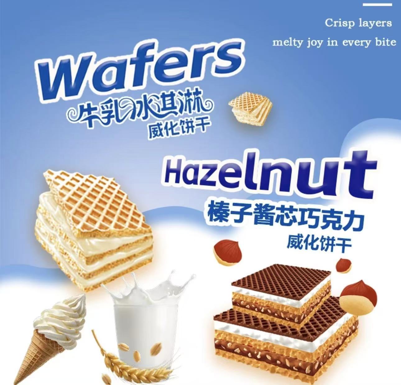 榛子酱巧克力威化饼干牛乳冰淇淋味浓香办公休闲充饥零食代发