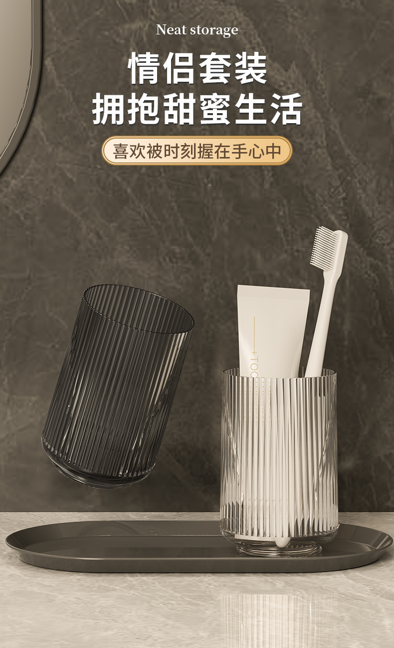 1. ins风情侣漱口杯一对装带盖洗漱杯 家用卫生间牙刷杯套装现货批发