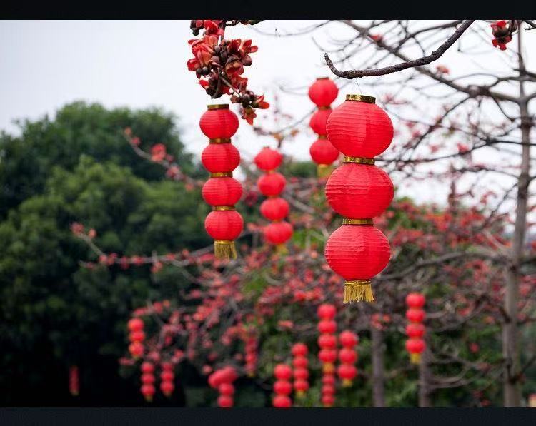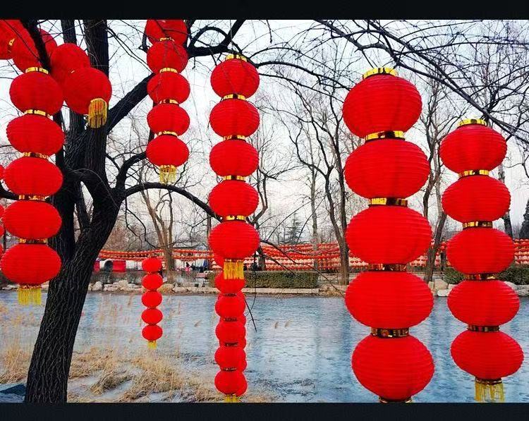 大红灯笼折叠拉丝连串灯笼春节假日灯笼院子布置结婚装饰户外防水