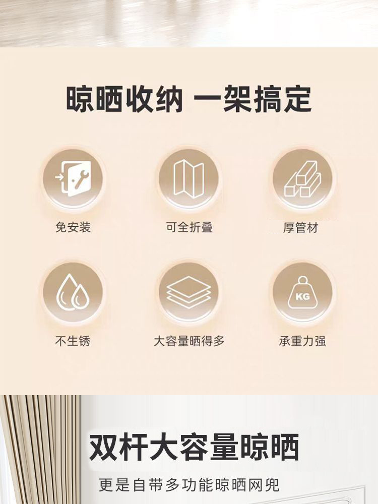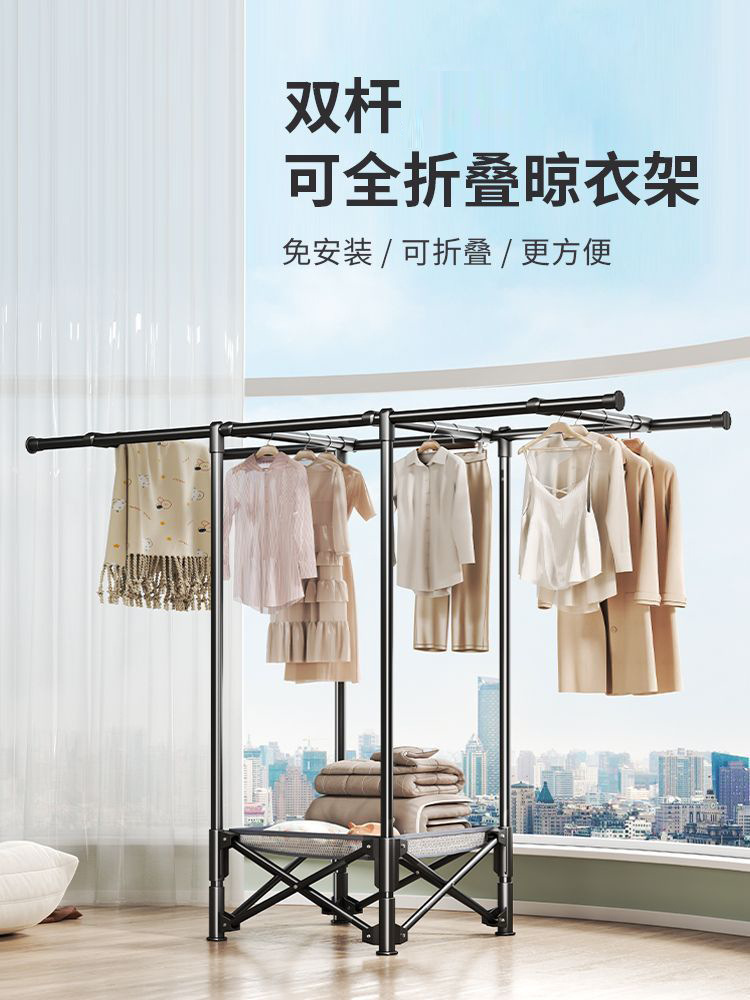 定制晾衣架阳台户外折叠伸缩双杆挂衣晒衣架室外凉衣杆室内晾衣架