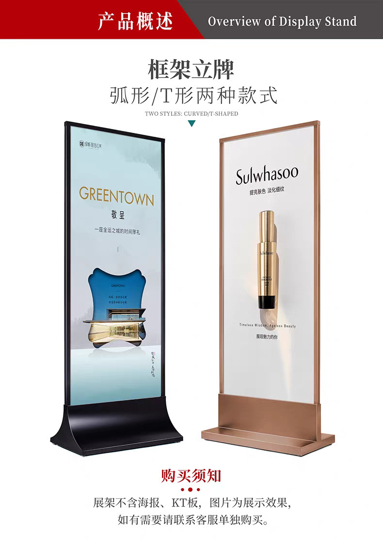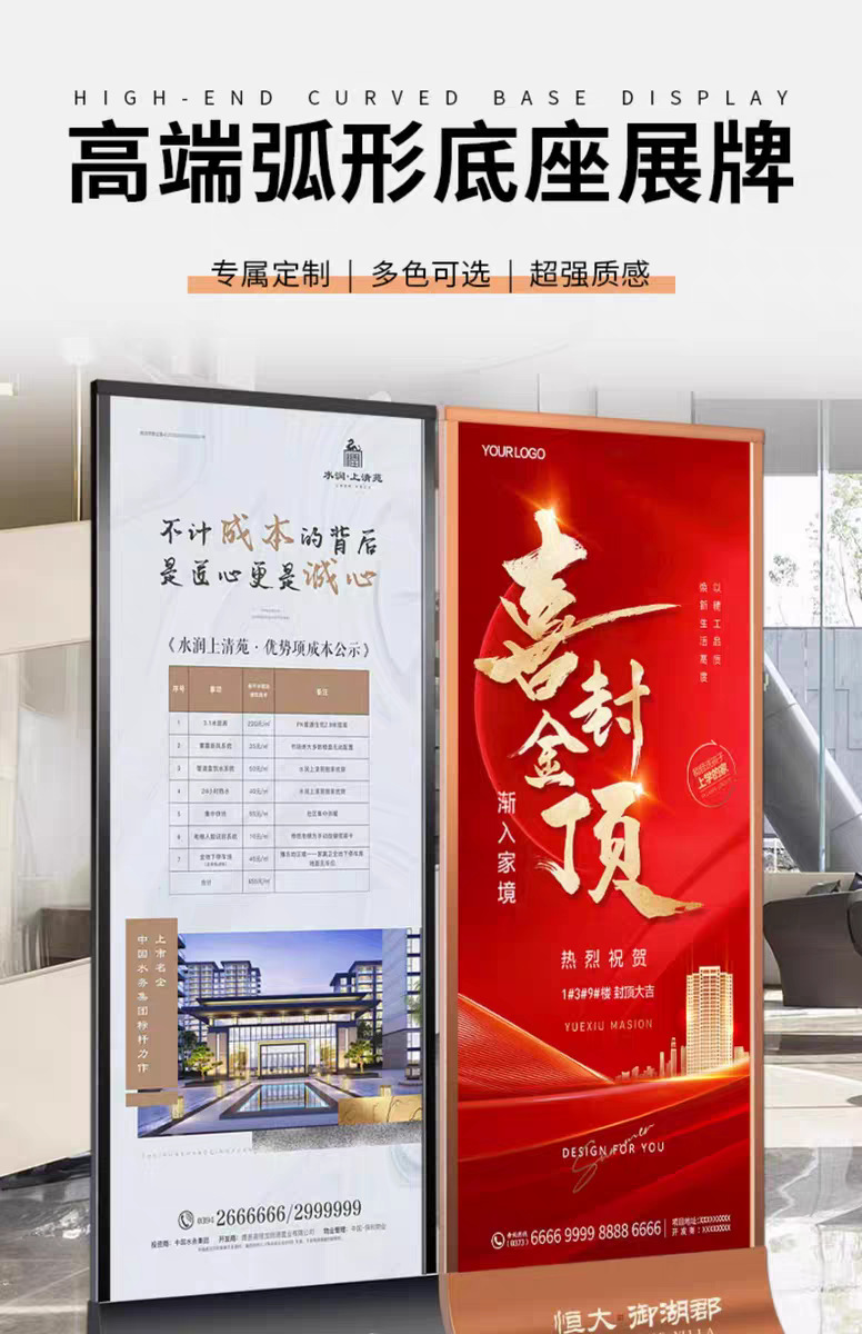 高端弧形底座展牌KT板立屏广告牌商场展架户外海报架子门型展架