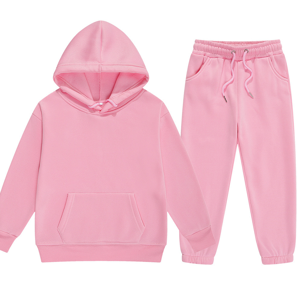 童装冬季欧美潮牌男童抓绒卫衣套装中大童女童连帽运动服多色