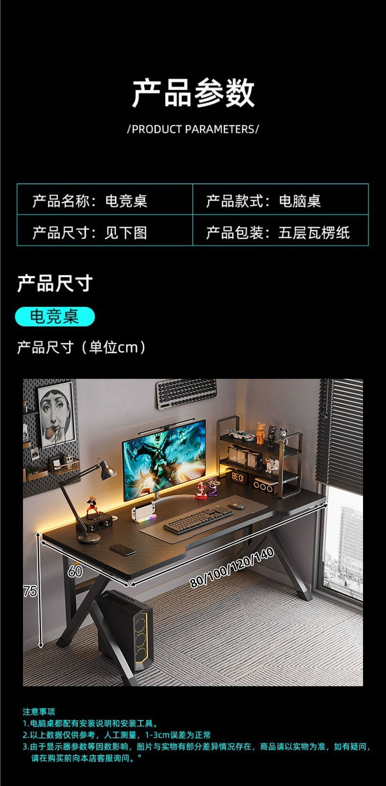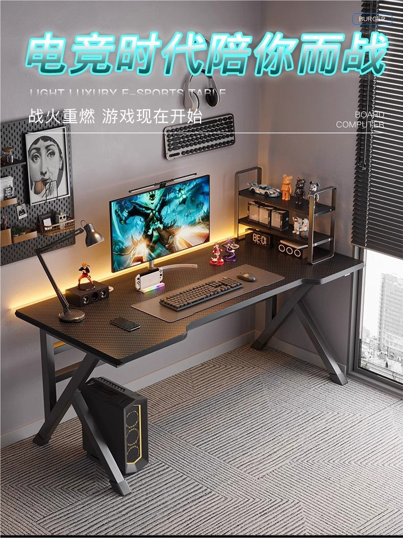 电竞桌碳纤维电脑桌台式卧室家用办公桌学生书桌简易工作台双人桌