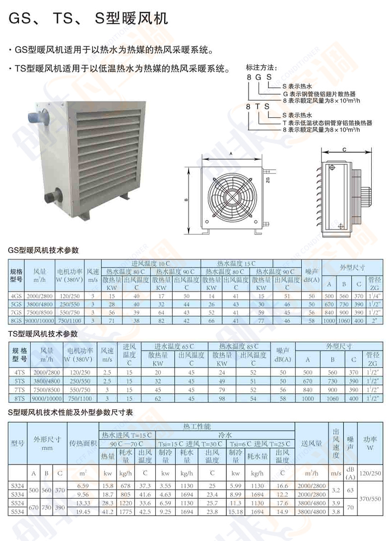 GS型工业防爆暖风机温室大棚采暖养殖加温设备钢管散热器水暖风机