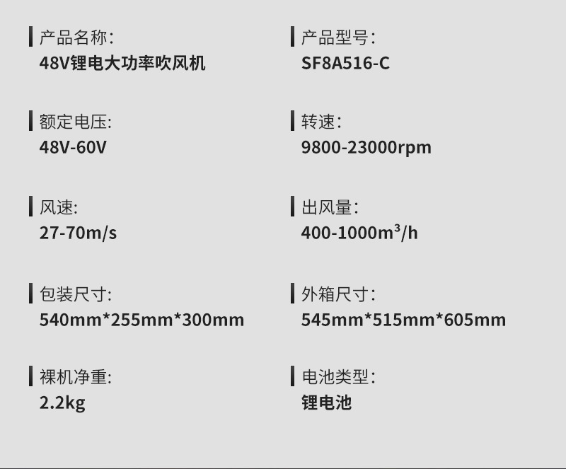 48V锂电大功率吹风机充电式园林落叶灰尘鼓风机无线锂电暴风吹雪