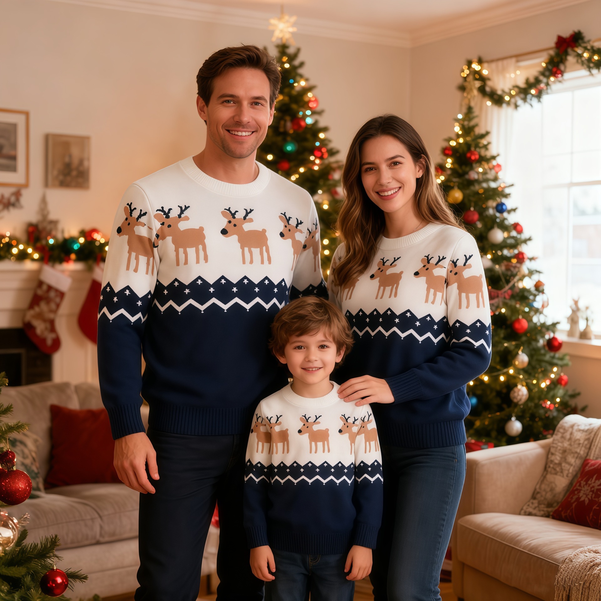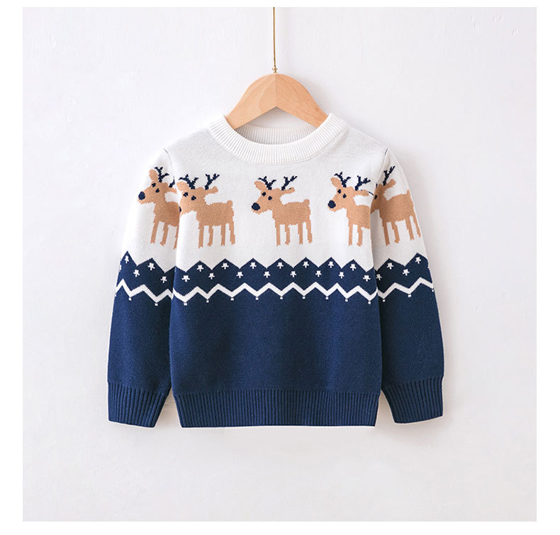欧美外贸爆款秋冬圣诞毛衣亲子装一家三口儿童麋鹿提花套头针织衫