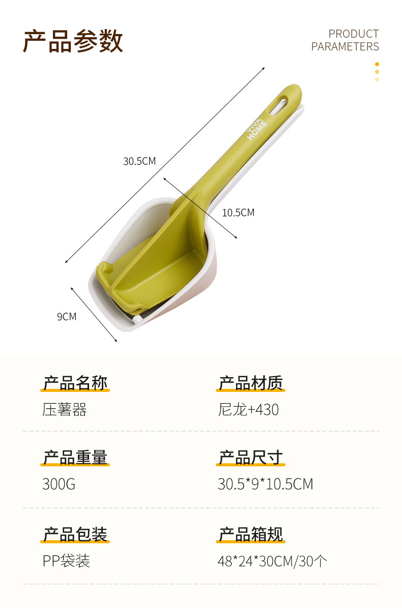 厨房手动土豆泥压泥器跨境批发婴儿辅食工具厨房捣泥器塑料材质压