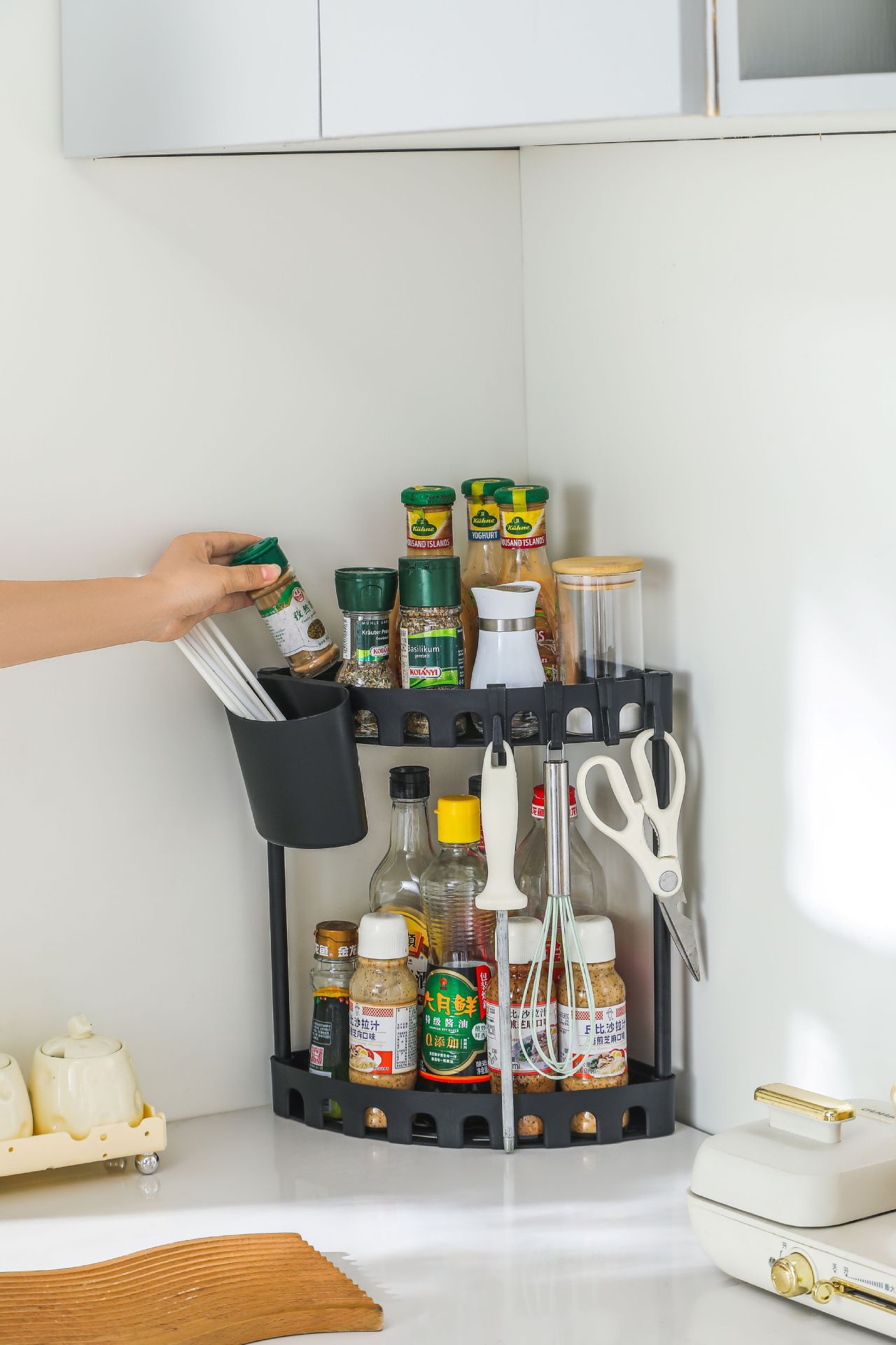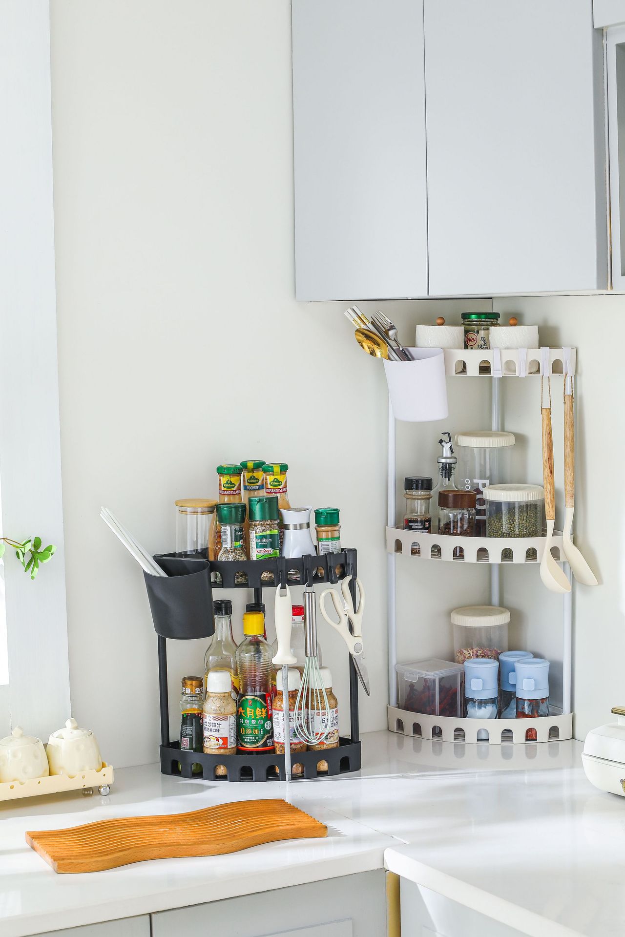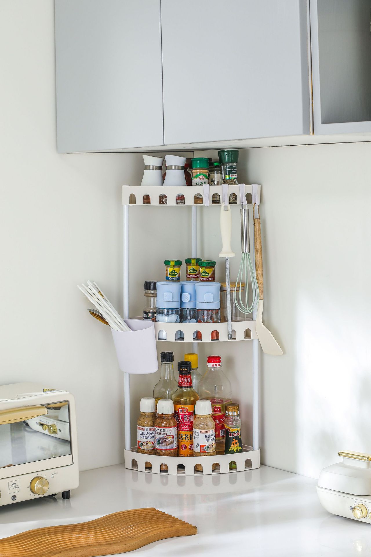 免打孔跨境厨房置物架浴室墙角转角架调料三角收纳架转角整理架