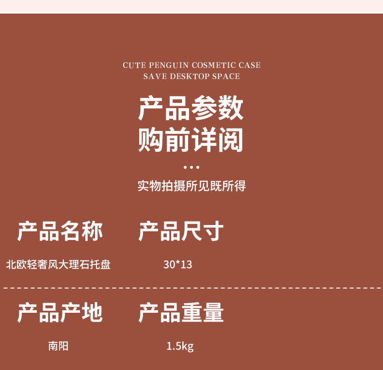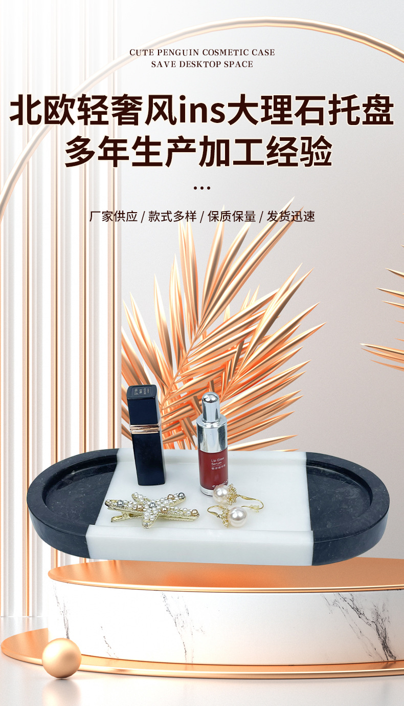 轻奢风ins大理石托盘赛道盘洞石首饰化妆品收纳卫生间洗漱台面摆