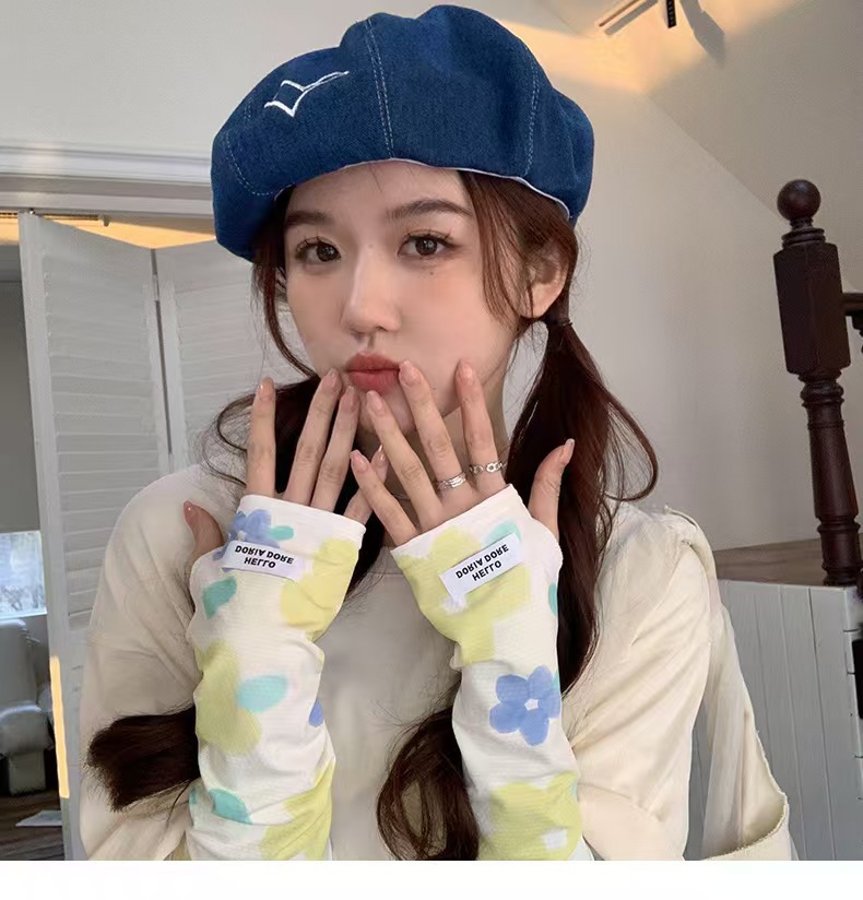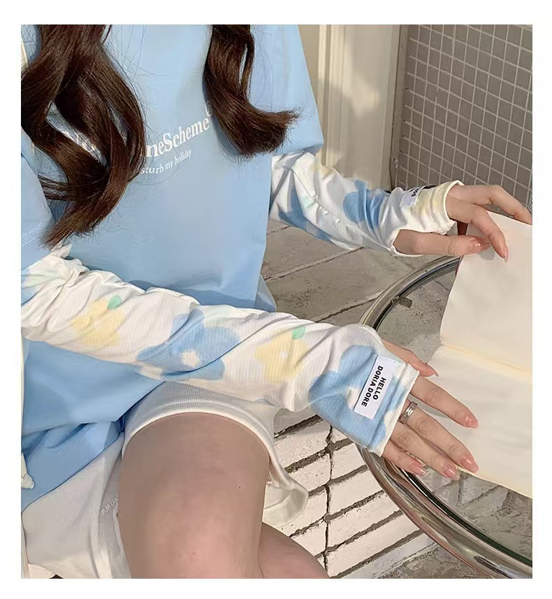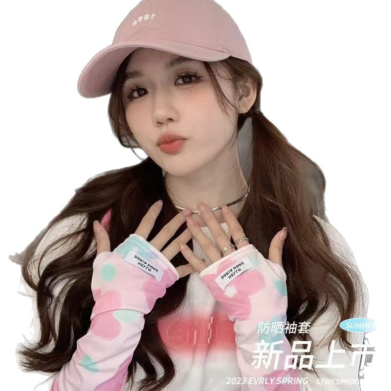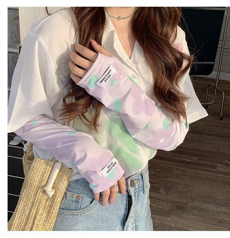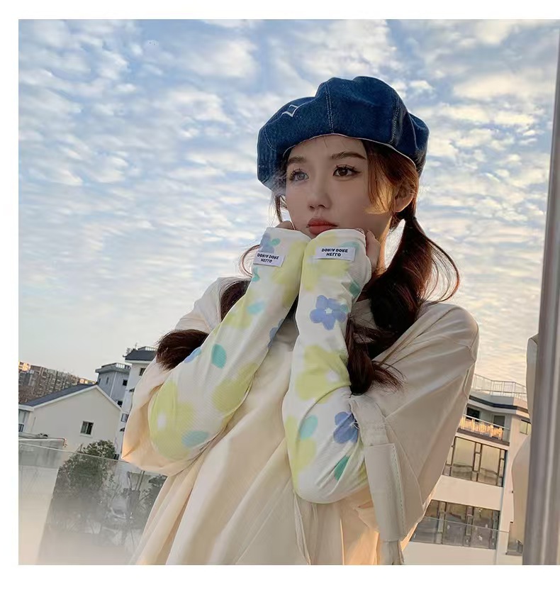 花朵冰袖女2023冰丝袖套夏季新款防晒手套防紫外线宽松遮阳护手袖