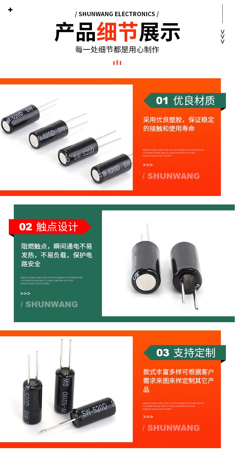 关键词:SW-520D摇珠传感器水平角度防倒倾斜开关单双珠晃动翻转滚
