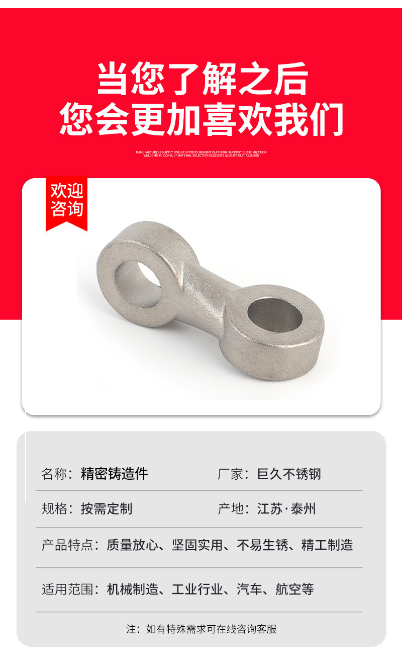 推荐理由:不锈钢精密铸造不锈钢件抛光浇铸件加工非标件硅溶胶浇铸钢