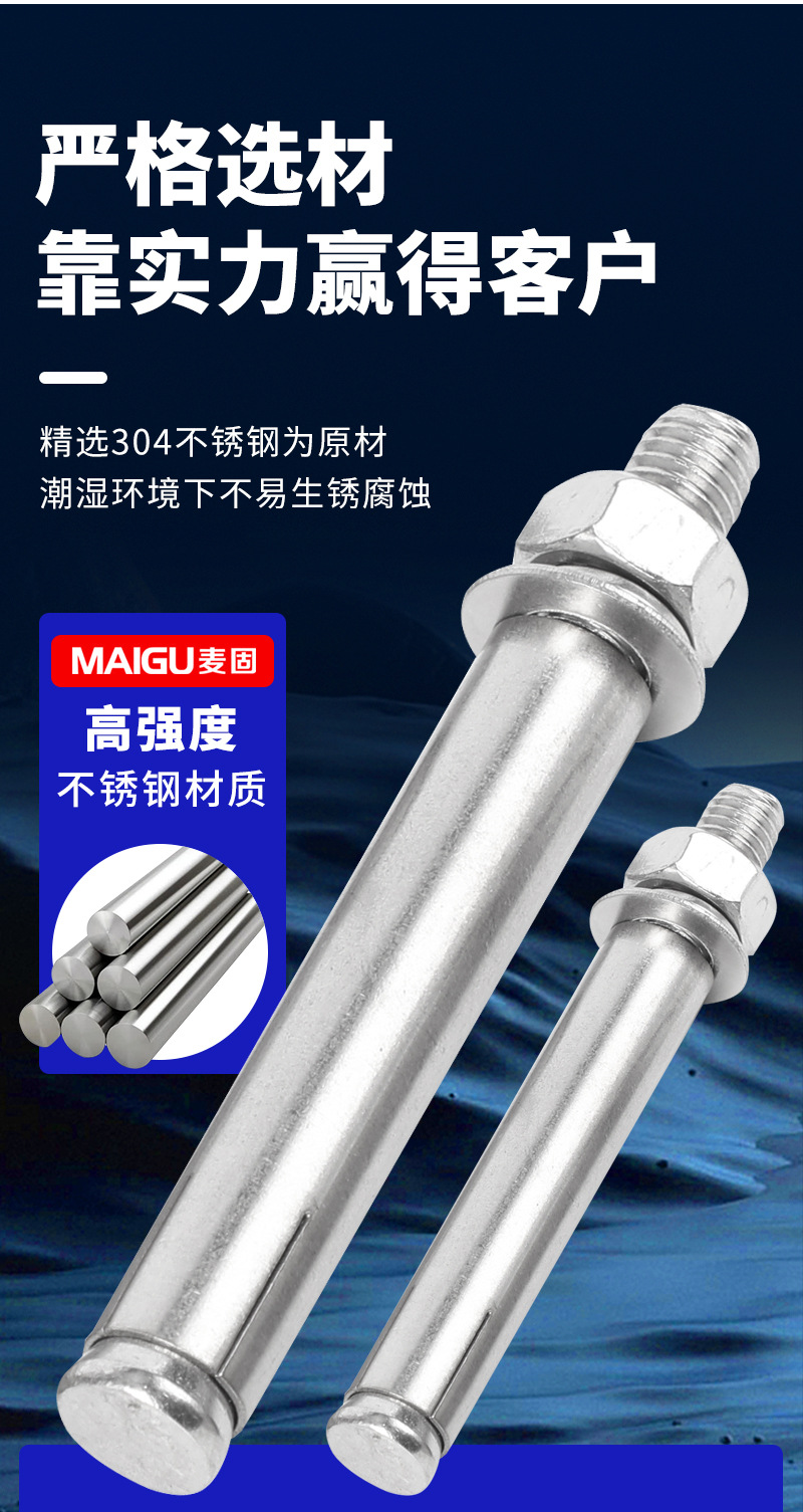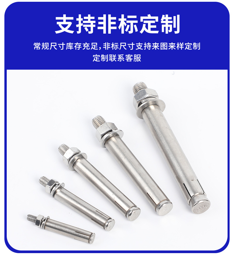 关键词:304不锈钢膨胀螺丝外膨胀拉爆螺栓M8M10高强度拉爆螺丝膨