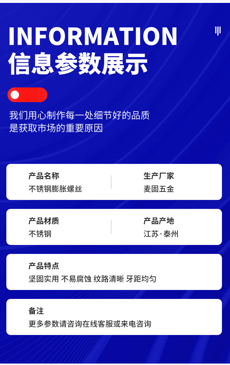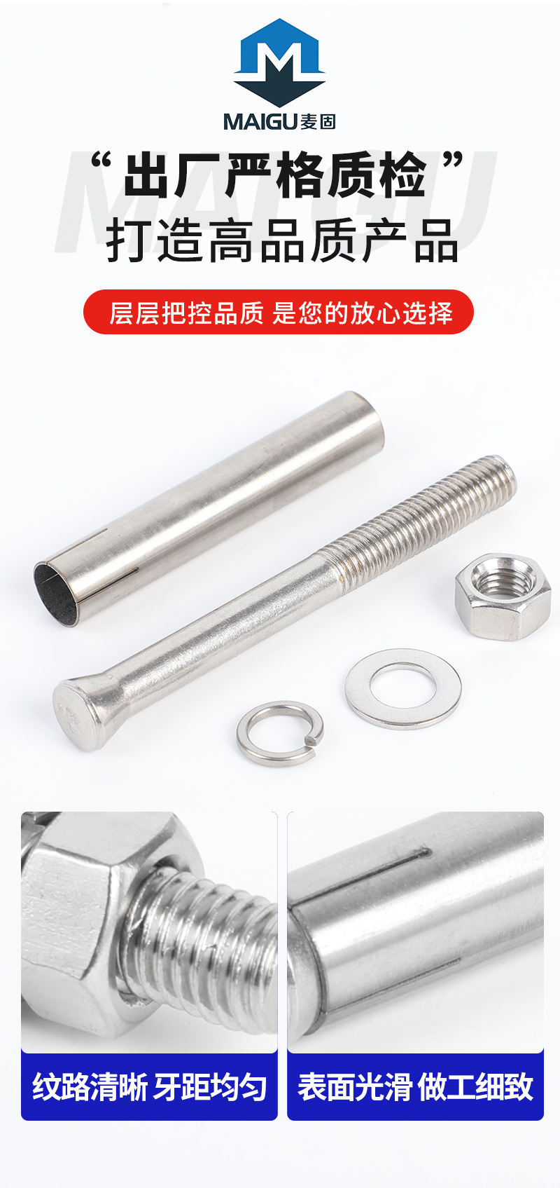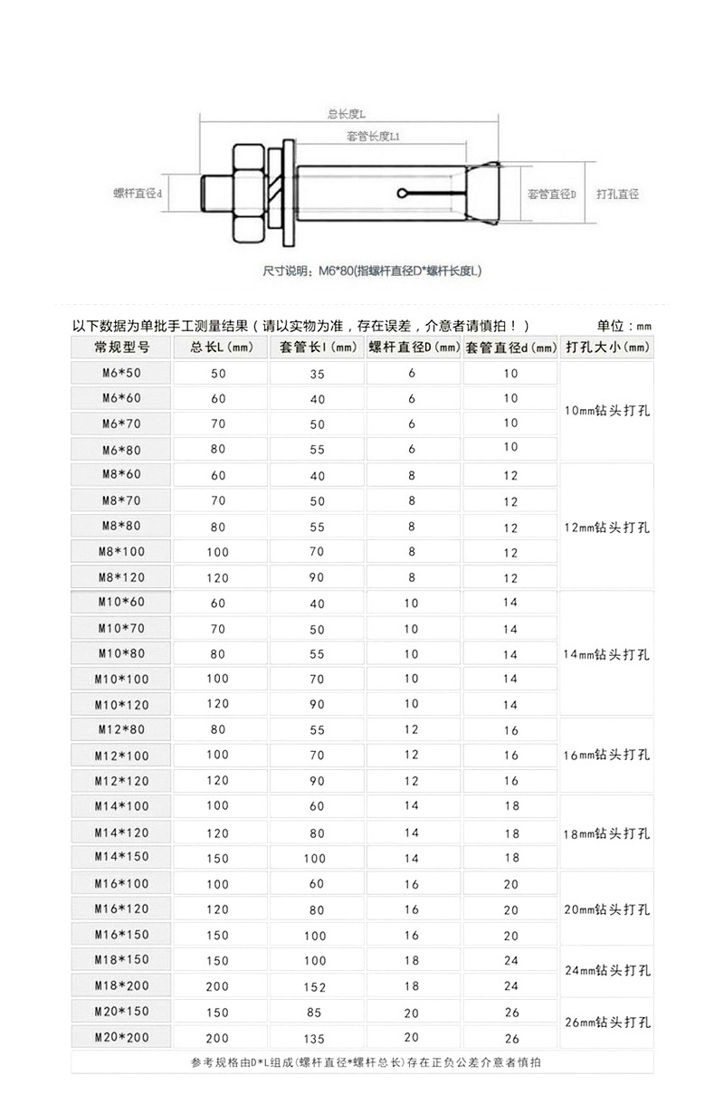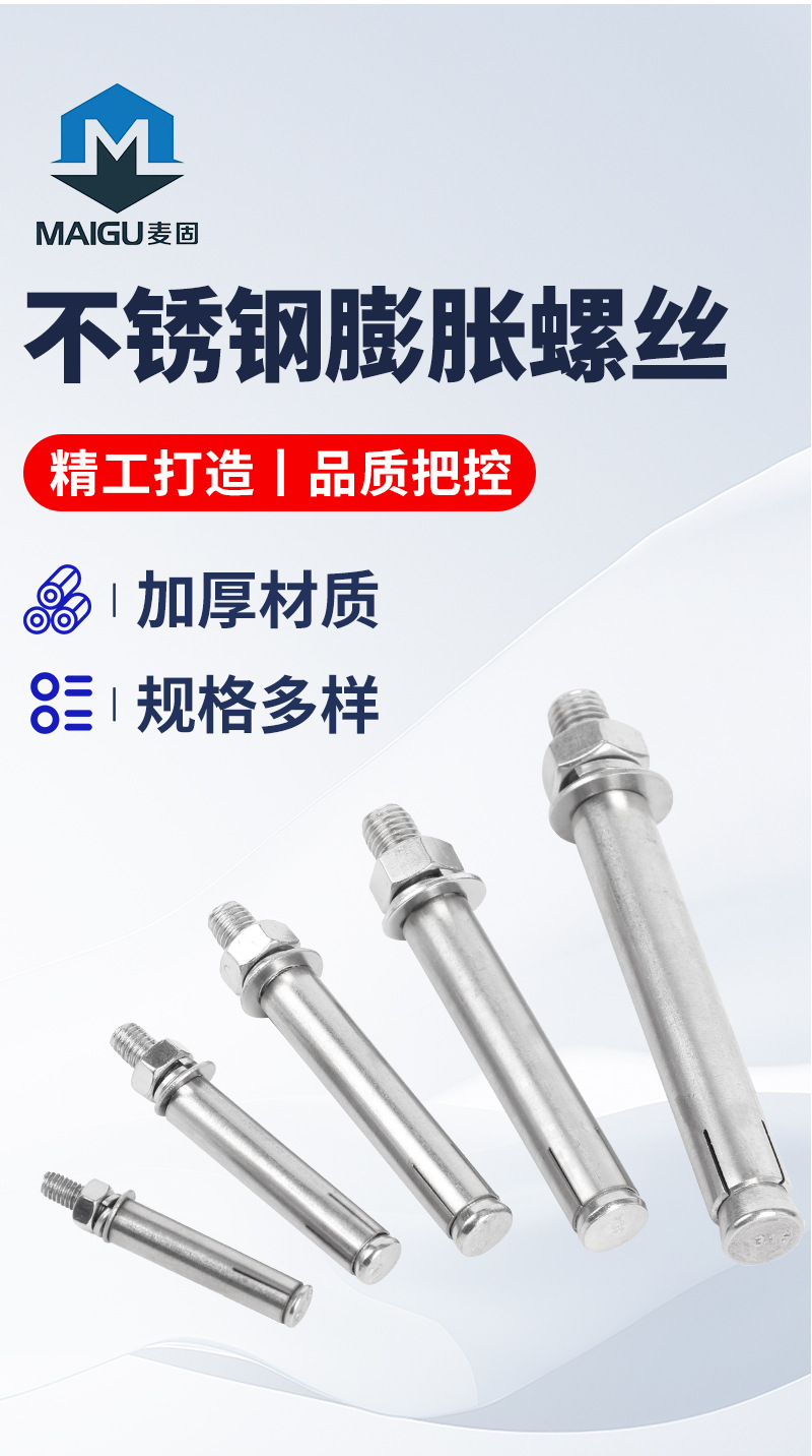 推荐理由:304不锈钢膨胀螺丝外膨胀拉爆螺栓M8M10高强度拉爆螺丝膨胀螺丝