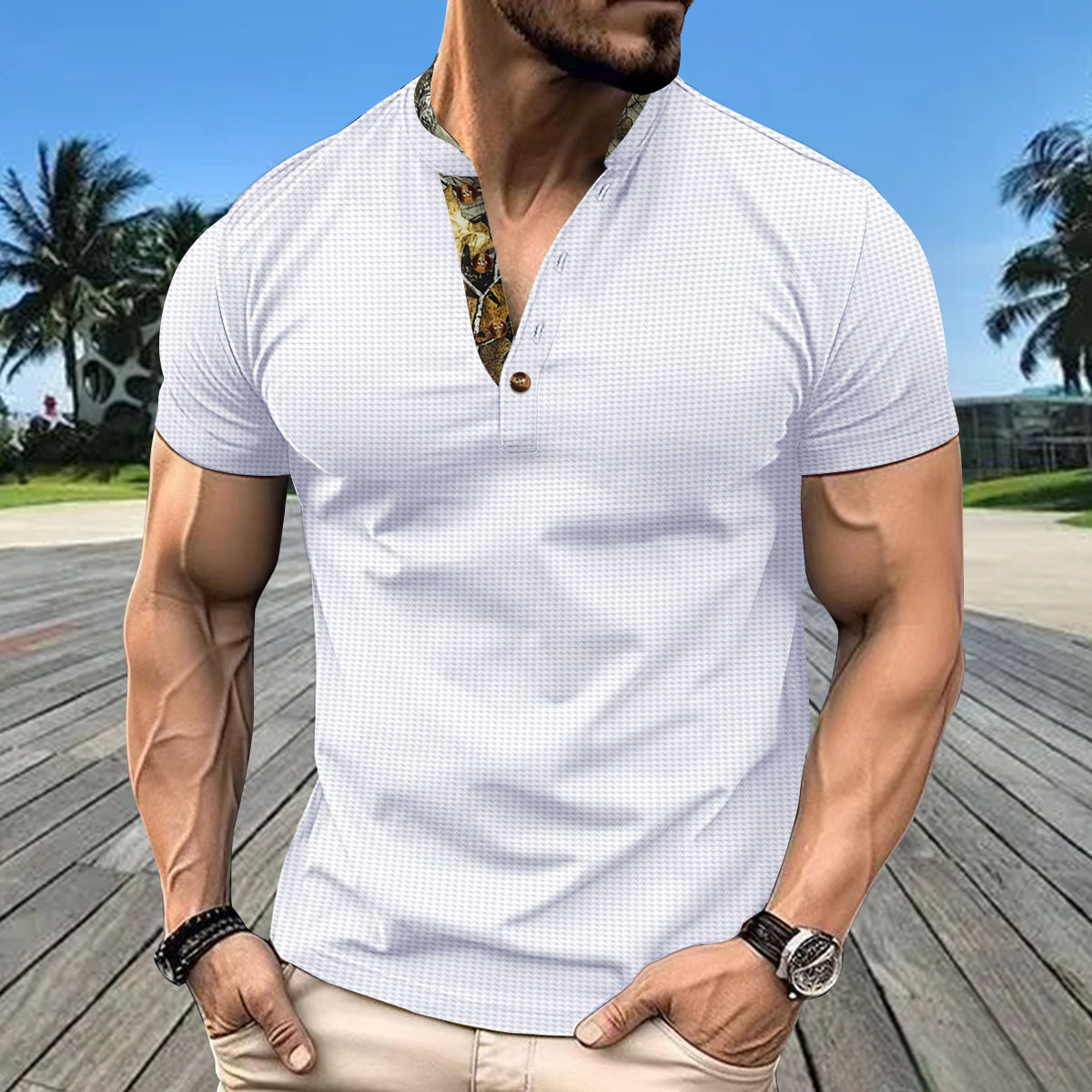 跨境速卖通亚马逊2024华夫格秋冬新款男士POLO衫双层立男士领短袖