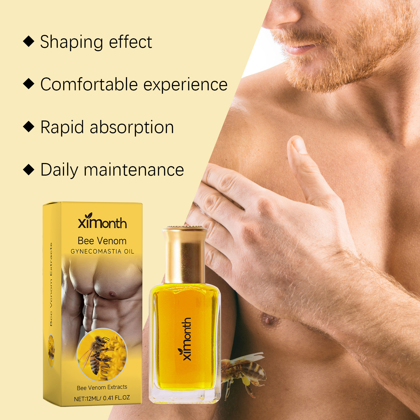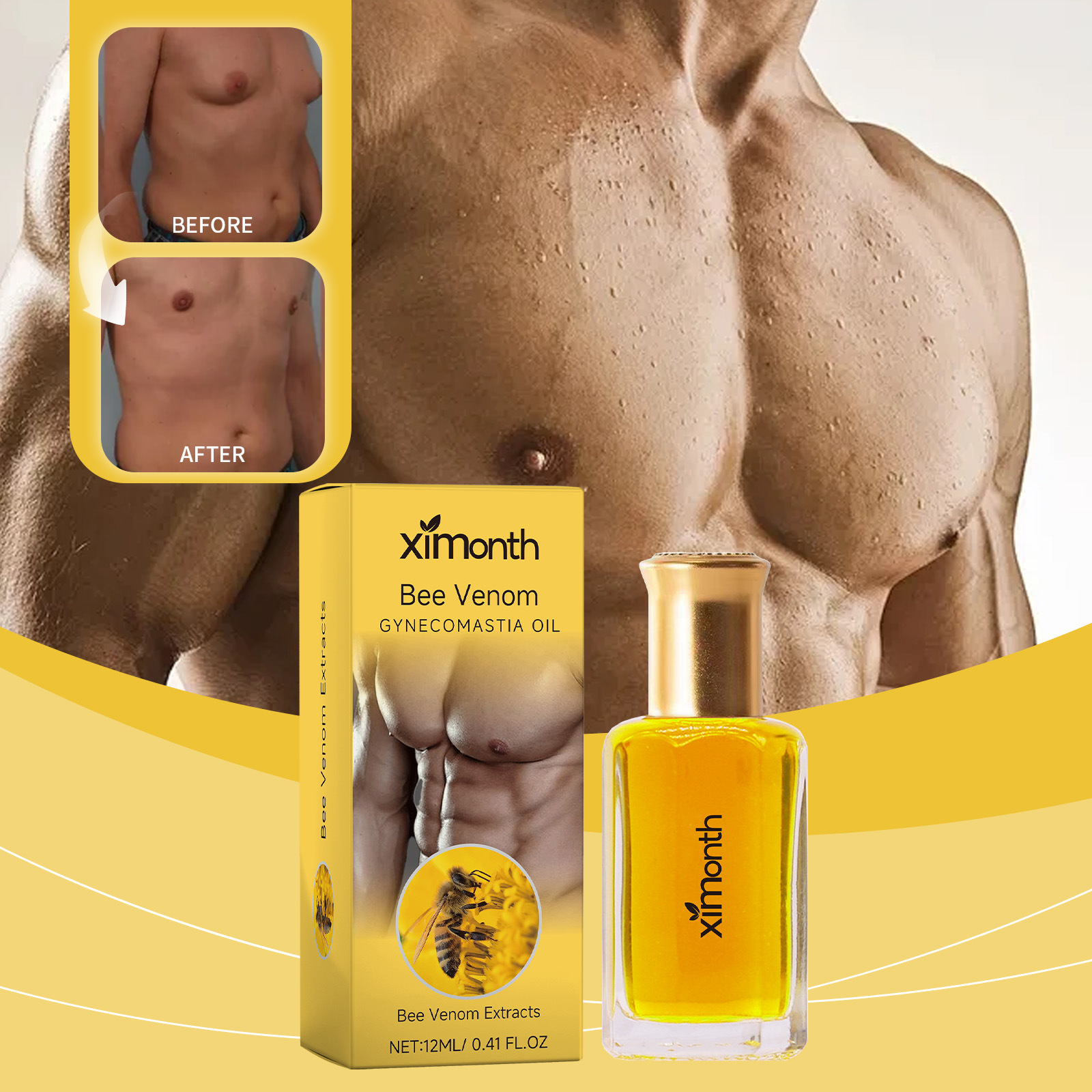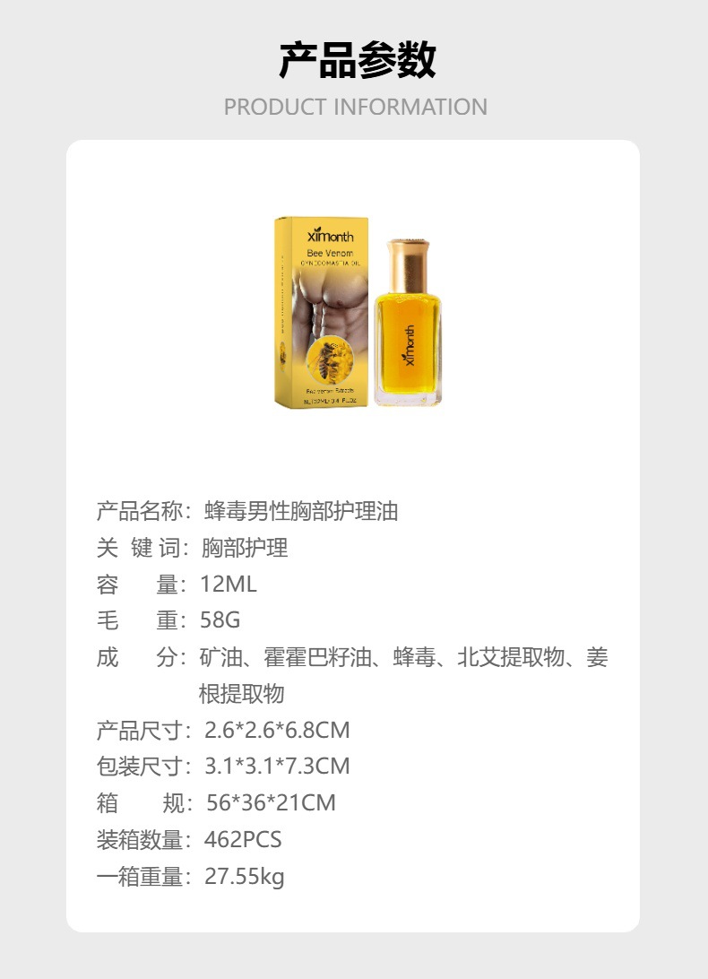 XIMONTH 男士胸部护理油 男士乳房轮廓肌肤滋润肌肤按摩护理