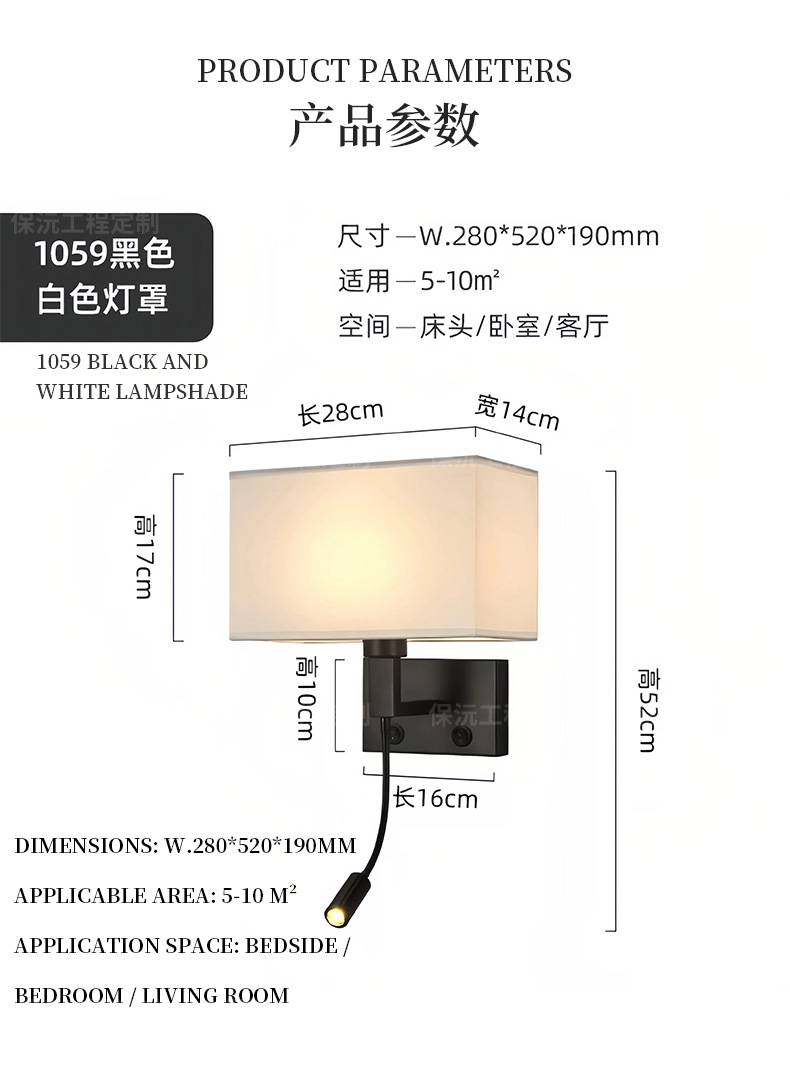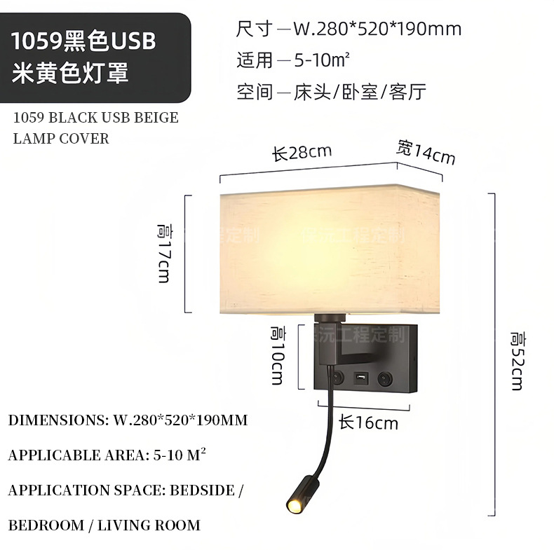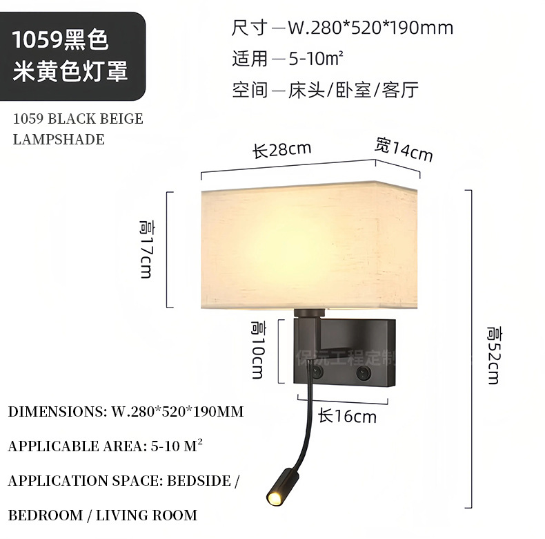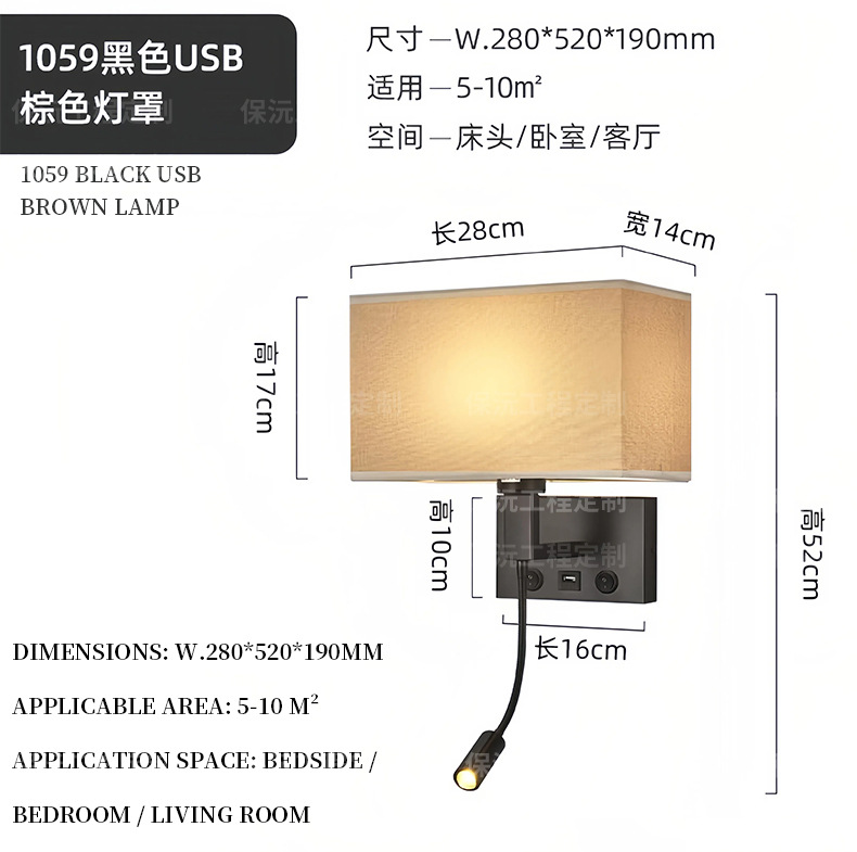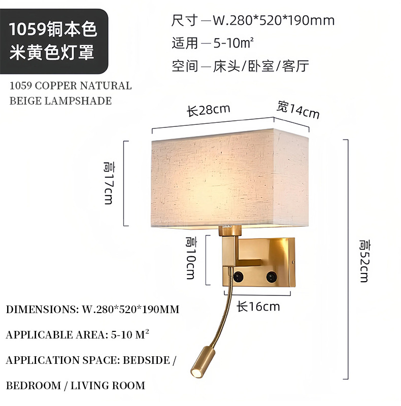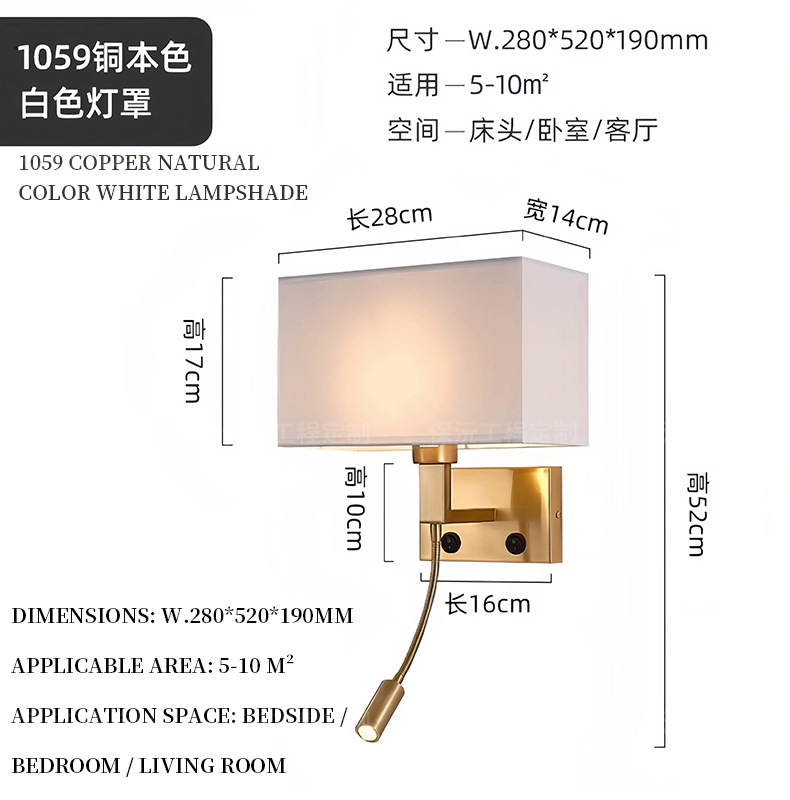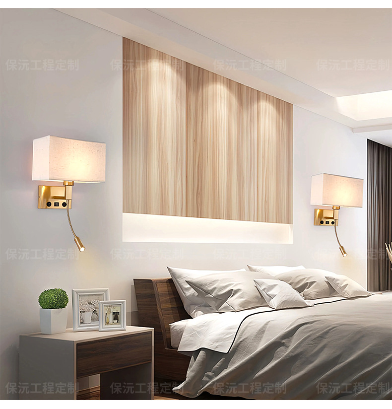简约布艺壁灯调光卧室led床头阅读灯北欧现代温馨宾馆酒店客房灯