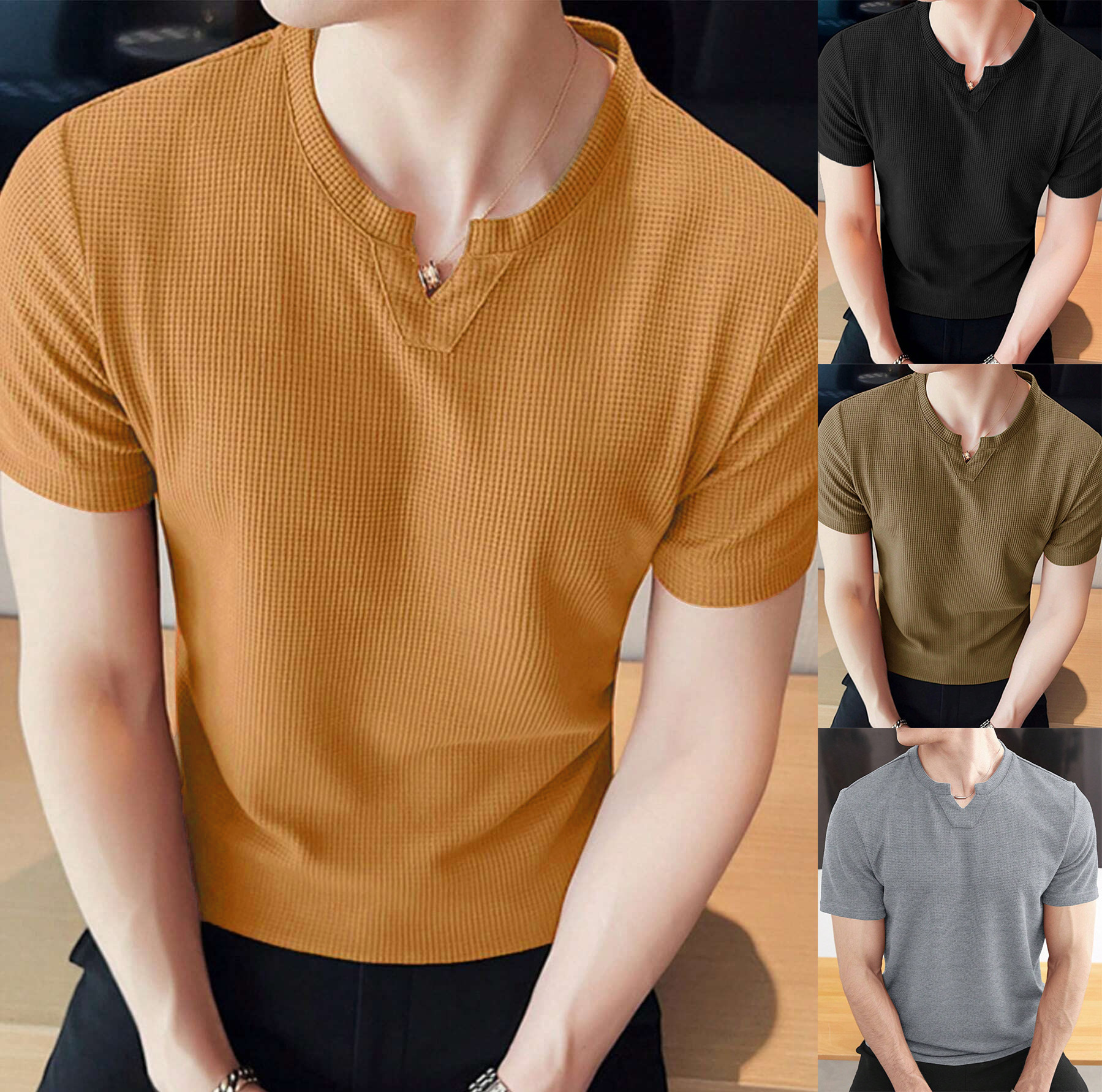 男跨境夏季新款运动休闲跑步锻炼健身房大弹力条纹速干男式短袖t