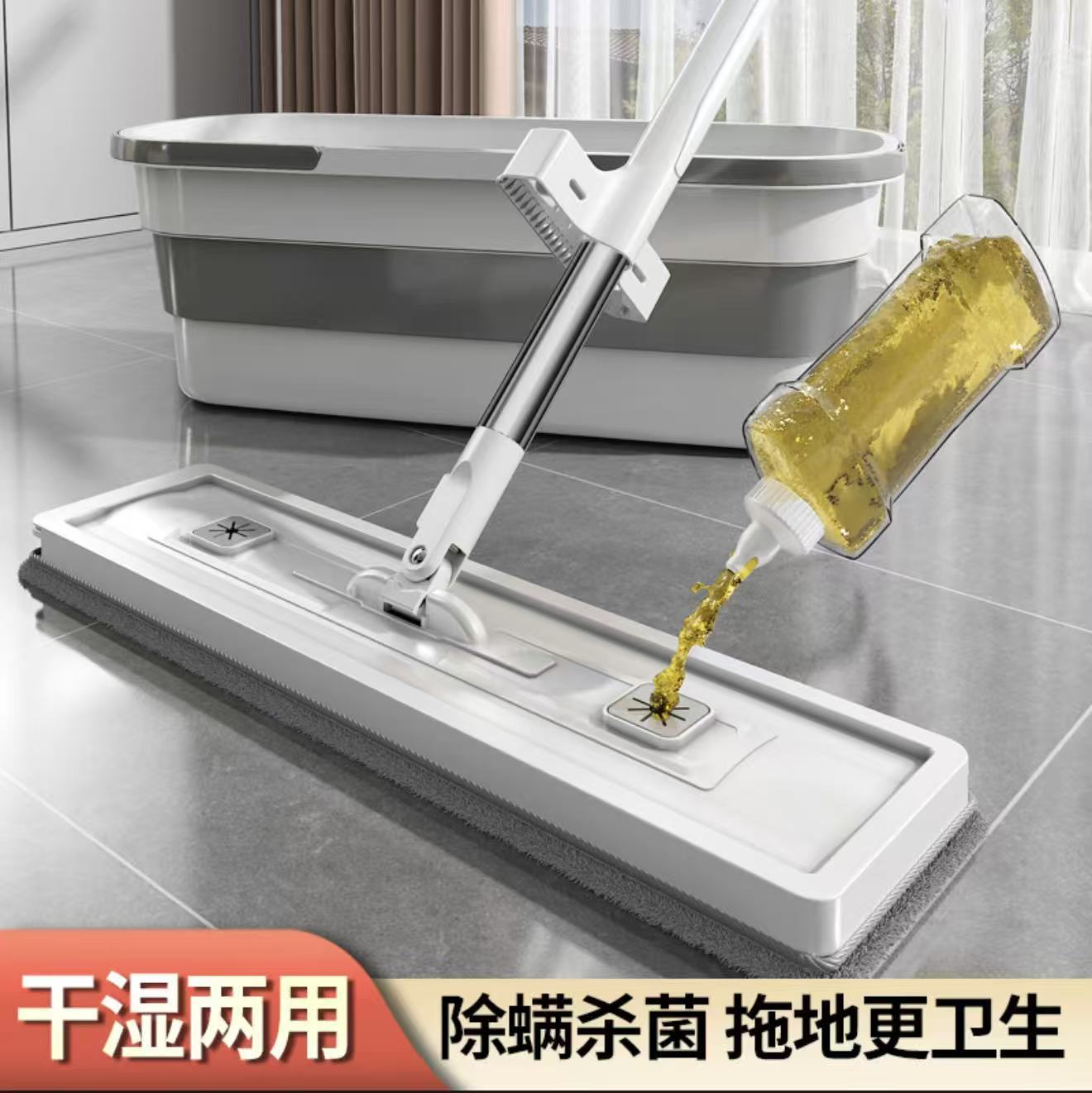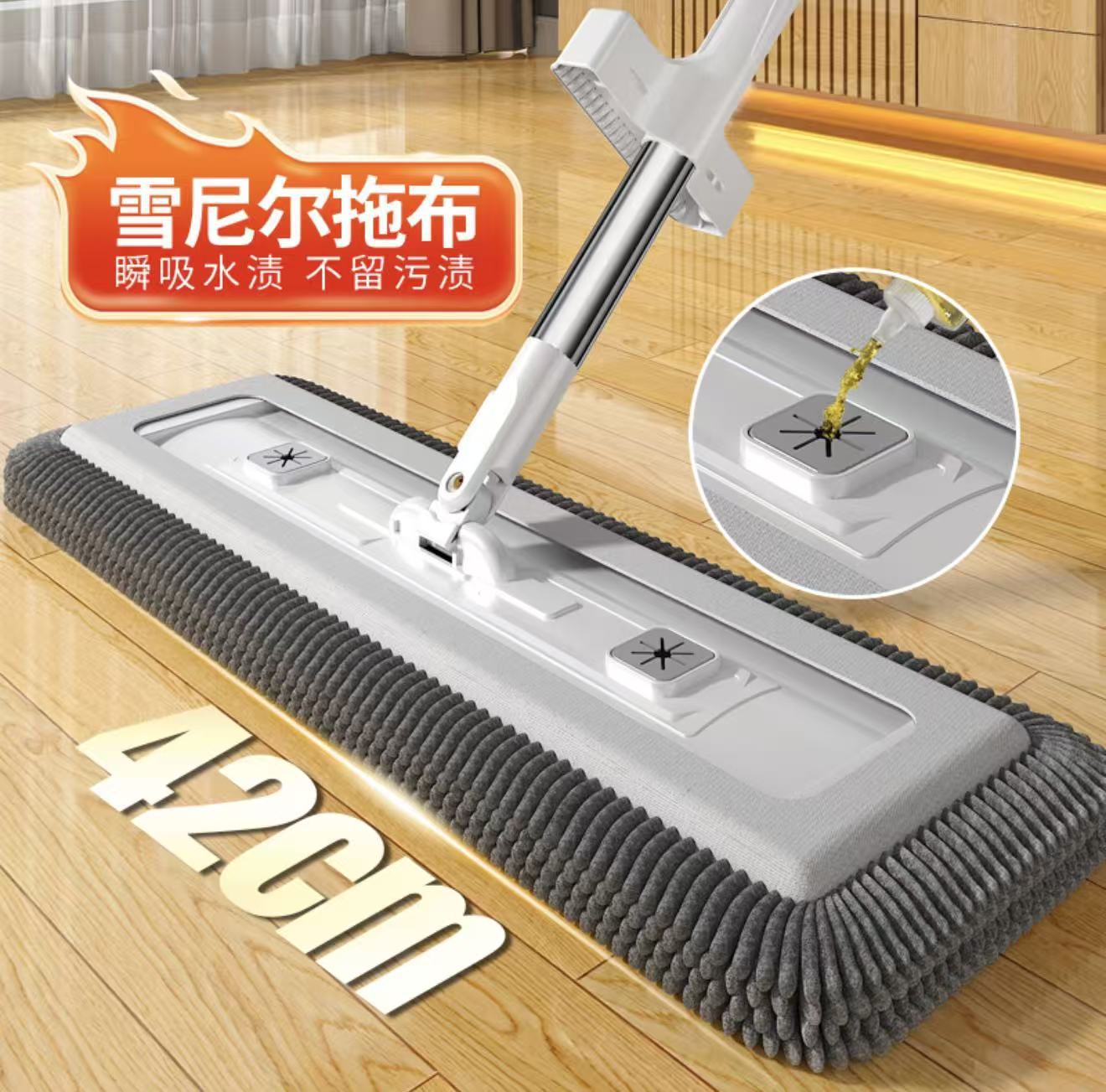 雪尼尔免手洗平板拖把加厚木地板干湿两用墩布大号带桶拖布一拖净