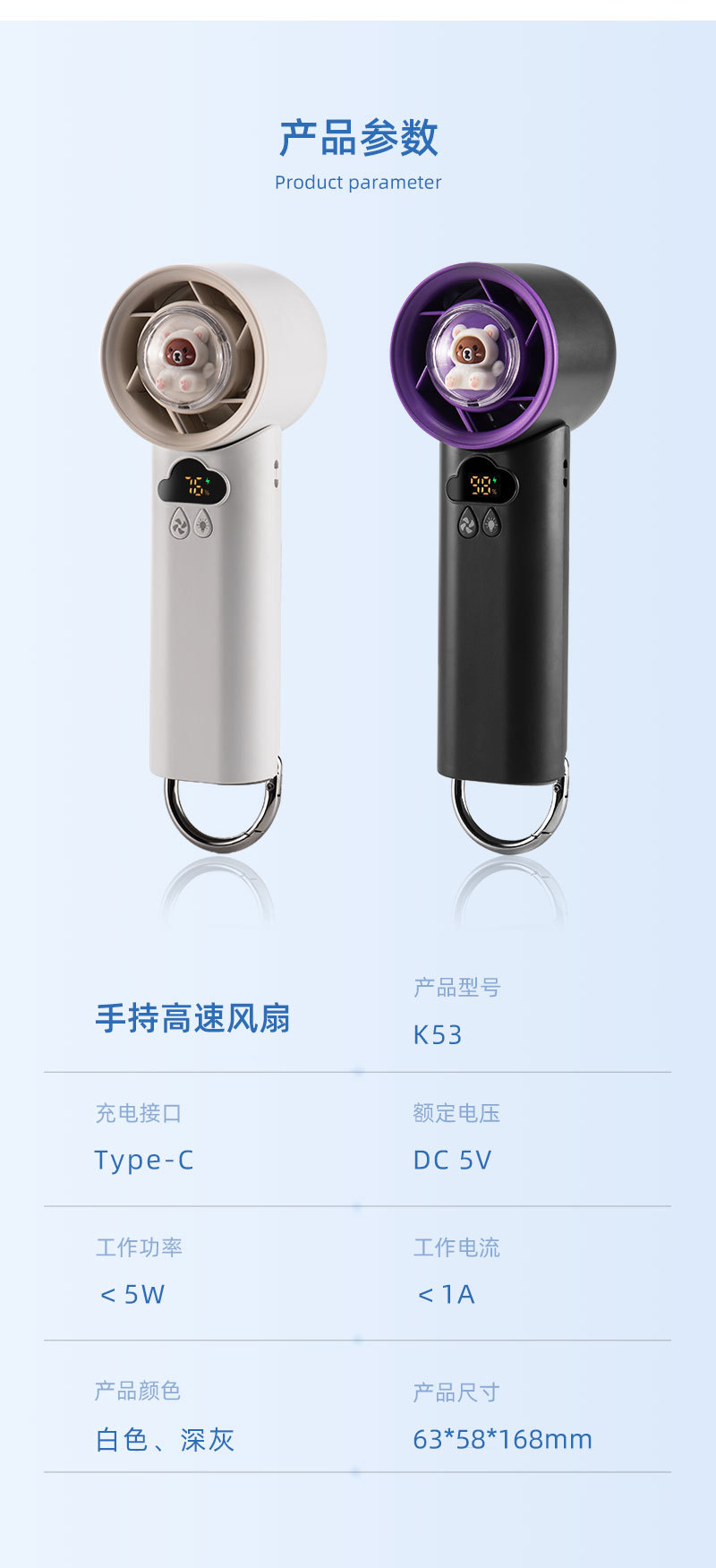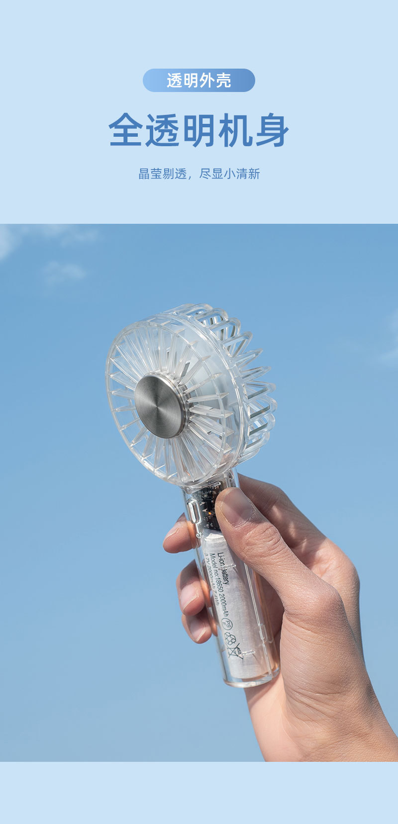 新款usb充电户外便携100档大风涡轮风扇透明高速制冷冰敷手持风扇