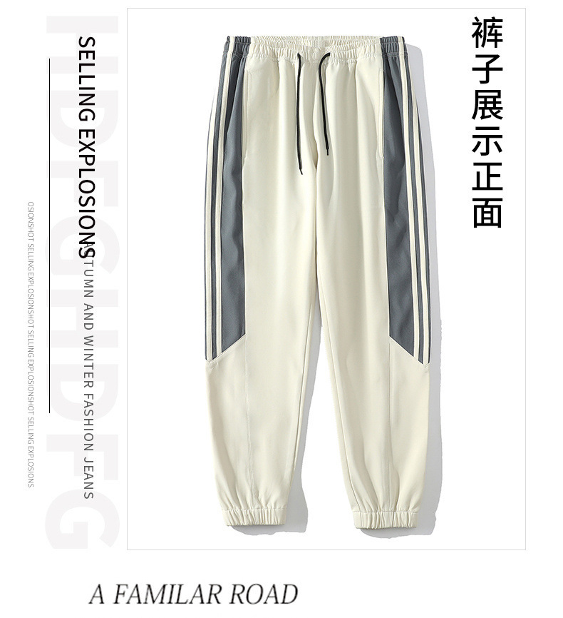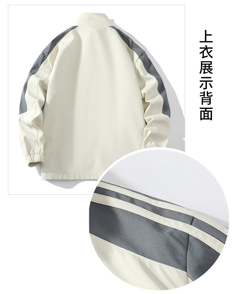 跨境春秋款男士立领休闲运动宽松条纹开衫拼色套装夹克时尚潮流